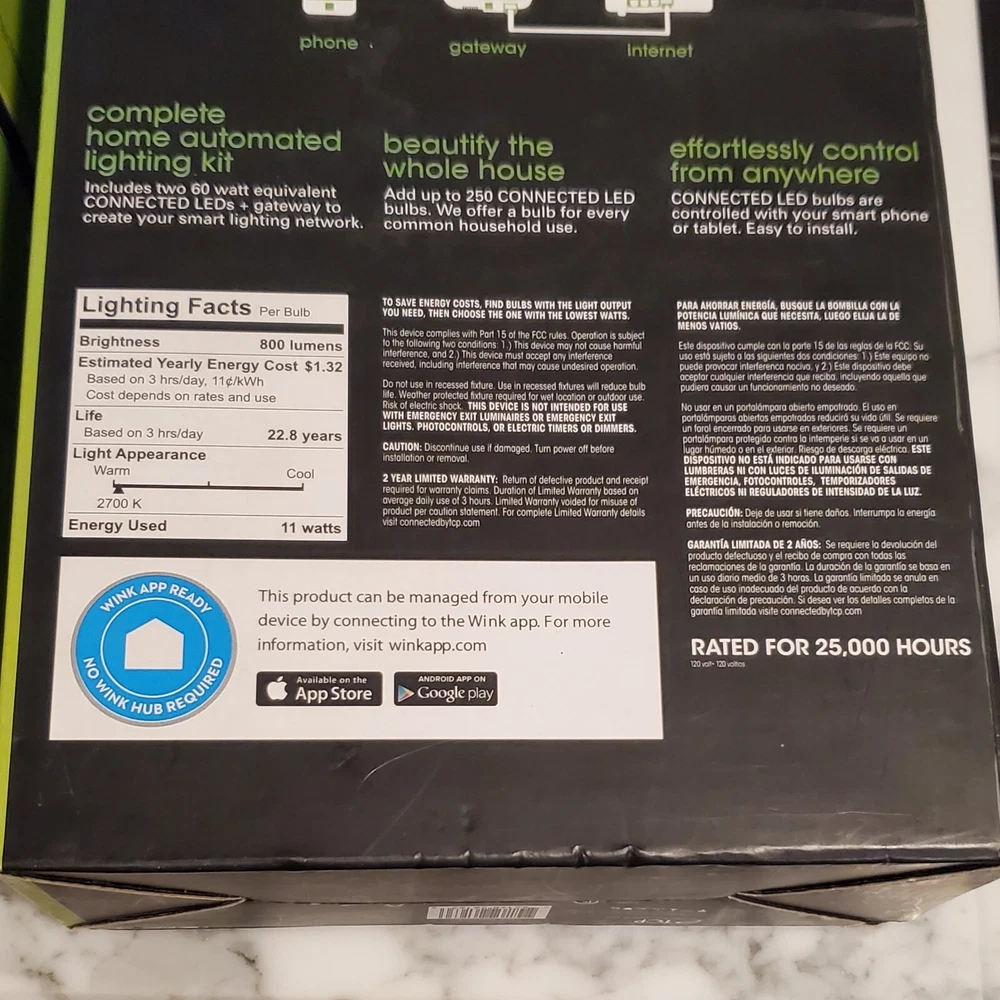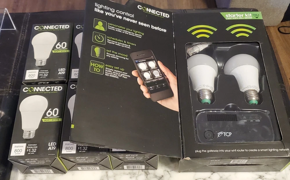 Elevate your home's lighting with the TCP Connected Automated LED Home Lighting System Starter Kit, complete with six additional bulbs. This smart lighting solution allows for effortless control and automation of your home's ambiance, ensuring a comfortable and welcoming atmosphere every time you enter. With its crisp white LED lighting technology, these standard-shaped bulbs seamlessly integrate into any fixture, providing both style and energy efficiency. Compatibility with the tcp smart home system offers a intuitive and responsive lighting experience, perfect for modernizing any space.