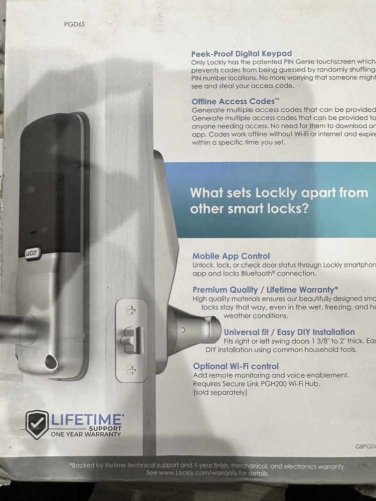 The Lockly Model PGD6S Latch Edition is a silver door knob designed with a satin nickel finish, offering a sleek and modern look for your home. This innovative product by Lockly provides advanced security features for your doors while also adding a touch of style. The latch edition ensures easy installation and reliable functionality, making it a convenient and practical choice for enhancing the security and aesthetic appeal of your home.