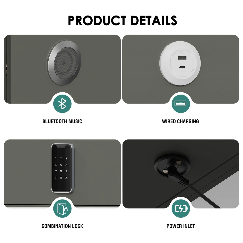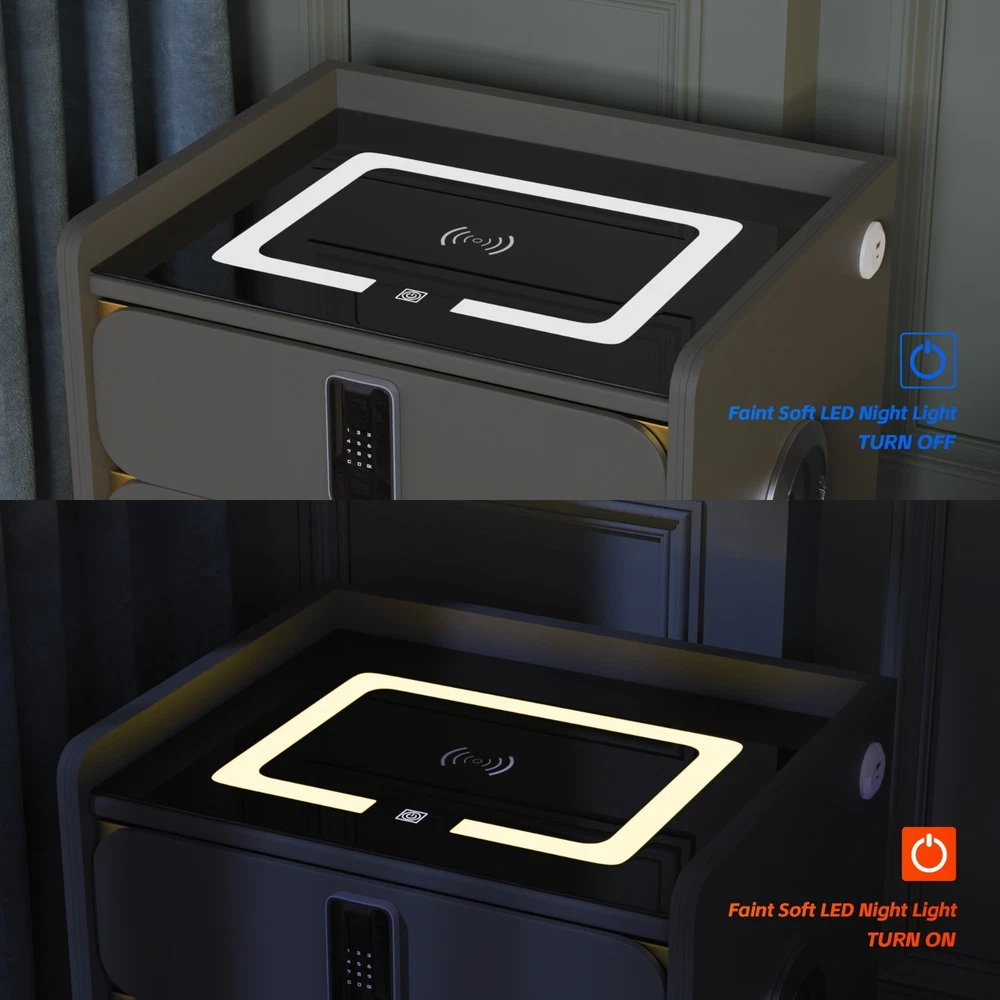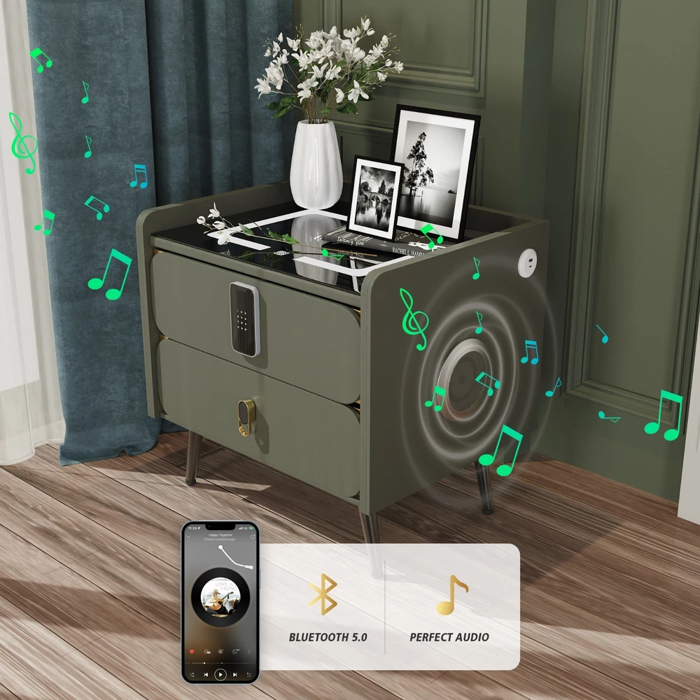 White Wireless Charging Bedside Cabinet w/Lock Bluetooth Speaker Bedside Table