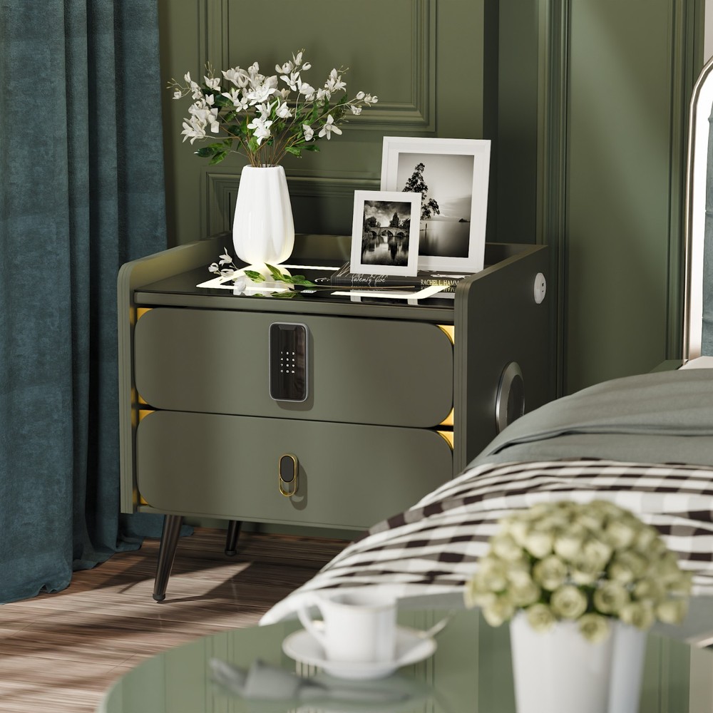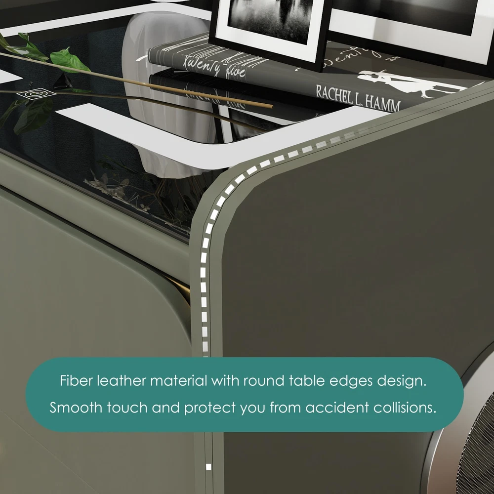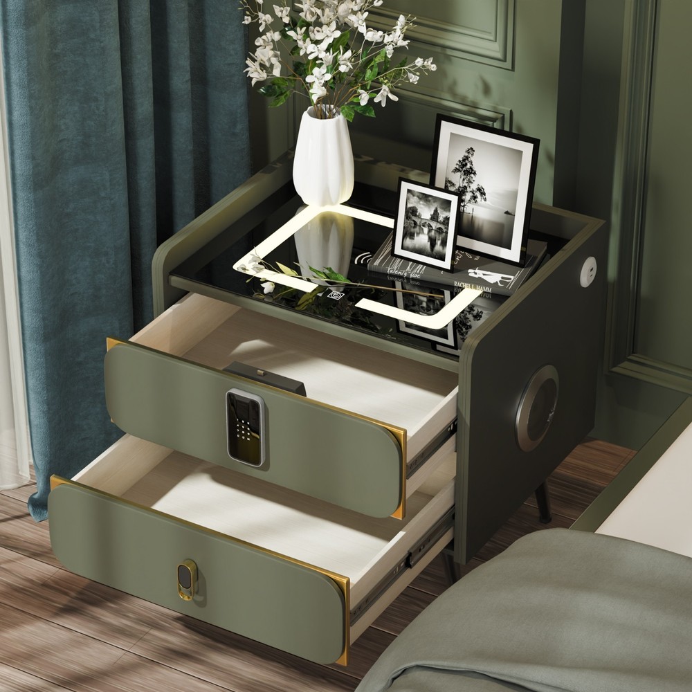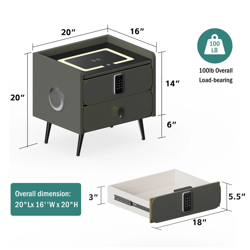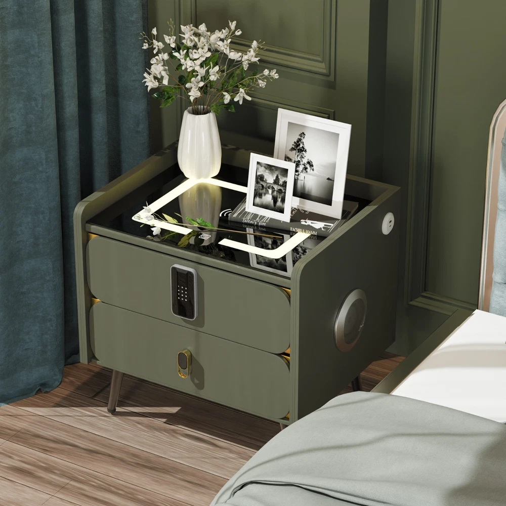 Smart Nightstand W/ Tri color light+Wireless Charging+USB+Speaker+Password Lock Specifications: Color: dark green Cabinet size (approximately): 50 * 40 * 46cm Complete shipment. Function: Three color light+wireless charging+USB+speaker+password lock, solid wood drawer, solid wood frame, wrapped in surface fiber leather. Package: 1 * Bedside table Payment Delivery details Terms of sales About us Contact us Payment You could make payment via: Delivery details Packages will ship via by UPS or USPS within our handling time,once the package is shipped out ,normally shipping takes about 3-10 working days,but due to different cities and states,shipping time will be different. Terms of sales If you any problem about shipping information, or the item you got : Arrived damaged; Wrong item sent; Missing parts or pieces; Doesn't work or defective; Doesn't match description or photos. Pls click "Contact Seller" and send us message firstly. Then we could have a check and will take responsibility to resolve the problem with you in good communication. About us Our company specializing in selling all kinds of light fixtures,such as ceiling fans,chandeliers,crystal lights,retro lamps,pendant light,etc. If there's any light fixture you are interested,pls feel free to contact us for more details. Contact us Normally your message will be replied in 1 business day,If after 24 hours you do not receive our reply,please kindly re-send us the message,because sometimes ebay message system will have technical problem,so your message can't send to us successfully.