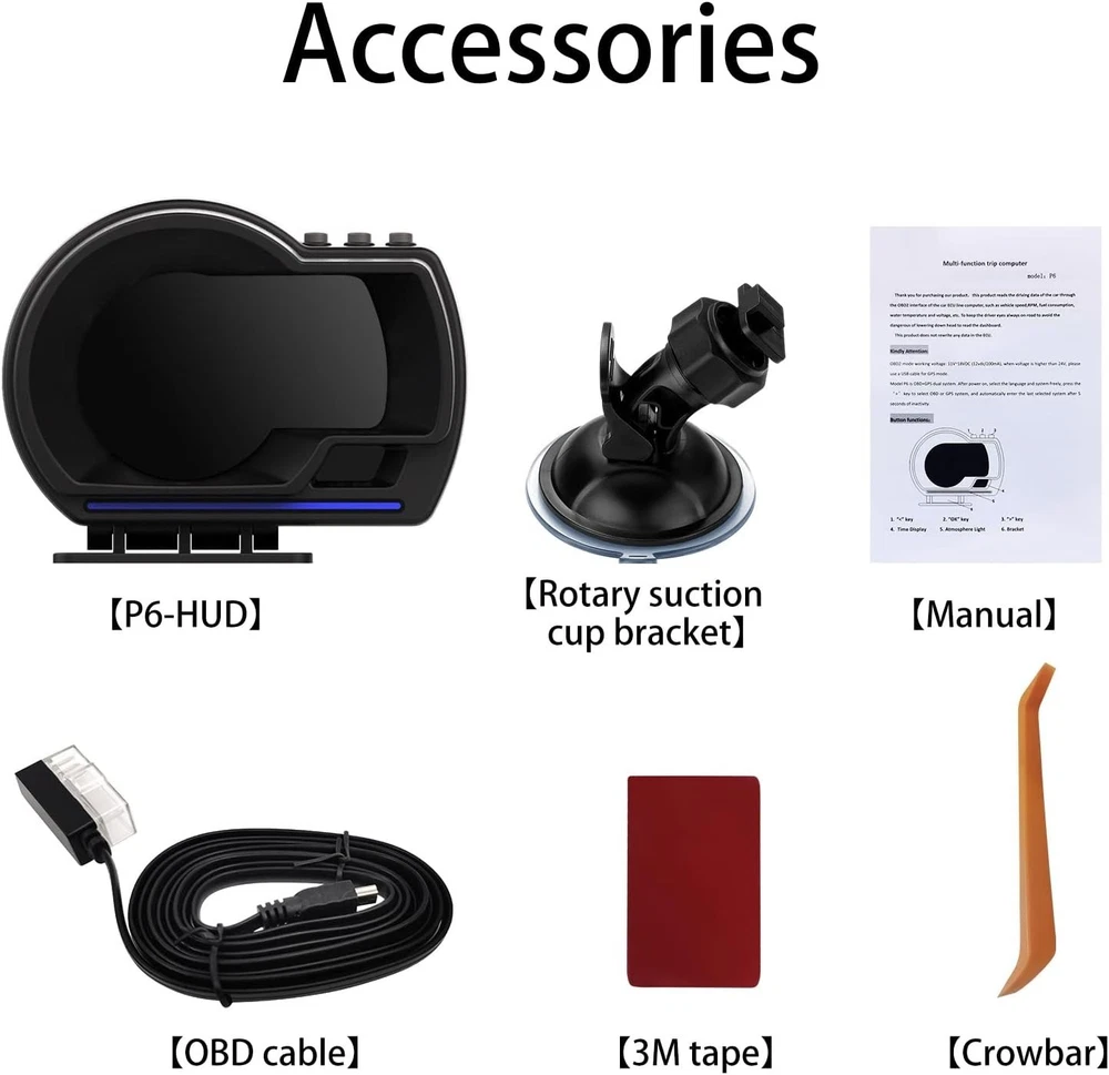 P6 Car Head-Up Display - Enhance Safety with OBD+GPS Smart Gauge Functionality ‹ › ‹ › ‹ › ‹ › ‹ › ‹ › ‹ › ‹ › ‹ › ‹ › ‹ › P6 Car Head-Up Display Enhance Safety with OBD+GPS Smart Gauge Functionality Safety First Focus on the road: Read your speed at a glance with clear digital numbers. Set your display angle effortlessly, minimizing distractions and enhancing your concentration. A New Driving Experience Enjoy 10 interface options to choose from, adapting to your personal preferences. Clear LCD meter displays fault codes and reads your car’s data stream for a comprehensive view of your vehicle’s health. Two installation methods: Place it on your dashboard or stick it to your windshield – installation is quick, easy, and non-destructive. A Must-Have Gadget Avoid unwanted points on your driving record and hefty speeding tickets. Stay informed on major highways with real-time speed monitoring. Peace of mind for passengers: Put your loved ones at ease by helping them see your speed while driving. Driving More Comfortable Ambient light adjusts automatically: Blue light for normal driving and an alarming red light for speeding. Experience alerts that allow you to respond swiftly to potential hazards, ensuring a smoother journey. More Smooth & Stable Unique dual mode: OBD + GPS functions displayed simultaneously for abundant data representation. OBD system capable of reading over 100 types of data in your vehicle, ensuring your driving experience is informed and safe. If your vehicle does not support OBD2 protocol, the device seamlessly defaults to GPS tracking for your convenience. Why Choose the P6 Car Head-Up Display? Revolutionize your driving experience with the P6 Car Head-Up Display. Merging modern technology with timeless safety features, this intelligent device enhances your awareness and comfort whether you’re navigating city streets or cruising on the highway. Keep track of your speed without looking down, and enjoy the peace of mind that comes from knowing your vehicle’s performance remains under your watchful eye. Don't just drive; drive with confidence. Shipping Free & Fast Shipping - We offer free shipping to most of the USA with a normal delivery time of 3-7 days. However, due to the current situation, additional delivery time (up to 3 weeks) may be required for some items. Alternative Carriers - We may use alternative carriers (e.g. USPS, FedEx, UPS, etc.) to ensure your package arrives safely and on time. Due to the use of multiple carriers, we are unable to provide a tracking number automatically. Handling Time - Orders are processed and shipped within 1-2 business days of receiving cleared payment. Shipping Restrictions - Shipping to Alaska, Hawaii, Puerto Rico, Guam, and other US territories may incur shipping charges or delivery restrictions. Please contact us before ordering, or your order can be refunded/cancelled. State Restrictions - There may be restrictions based on your state of purchase. For example, certain items may not be shipped to California due to state regulations. Contact for Tracking Updates - If you require tracking updates or have any concerns about the delivery of your order, please feel free to contact us, and we will be happy to assist you. Return 30-Day Hassle-Free Returns - We want you to be completely satisfied with your purchase. If you are not, you can return the item within 30 days of receiving it for a full refund or exchange. Easy Return Process - To start a return, simply contact us and we will provide you with a prepaid return shipping label and detailed instructions. Restocking Fee - There are no restocking fees for returns. However, the buyer is responsible for return shipping costs if the return is not due to a seller's error. Refund Processing Time - Refunds will be processed within 5 business days of receiving the returned item in its condition. Payment We accept all major credit cards, PayPal, and Apple Pay for your convenience. Your payment information is secure and encrypted to ensure a safe and seamless transaction. Please complete your payment within 3 days of purchase to avoid any delays in shipping. Feedback Your feedback is extremely important to us. We strive to provide the best products and customer service possible. If you are satisfied with your purchase, please take a moment to leave us a positive review. If you have any concerns or issues with your order, please contact us before leaving negative feedback. We are committed to resolving any problems and ensuring your satisfaction. Contact Us If you have any questions or concerns, please feel free to out to our customer support team. You can contact us through the eBay messaging system. We are available Monday to Friday, 9:00 am to 5:00 pm EST, and we will do our best to respond to your inquiry within 24 hours. Buy it now and enjoy a pleasant shopping experience! Display Type: Digital Unit of Measure: km/h,mph Features: Alarm,Clock,Head-up Display Material: Plastic Items Included: Mounting Hardware,p6-hud,rotary suction cup bracket,manual,obd cable,3m tape,crowba Type: Speedometer Style: Modern Color: Black Needle Color: Blue Item Diameter: 3.54 in Item Height: 11 Centimeters Maximum Speedometer Value: 100 mph Item Weight: 190 grams
