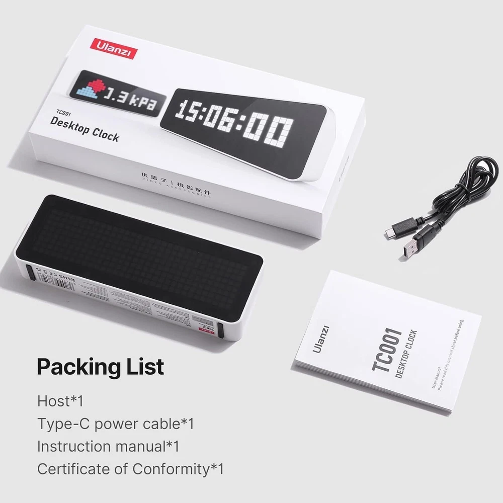 Pixelated Message Display&Hi-tech and Stunning Appearance: This is pixel art display that can be customized to whatever pixel art you like on the screen. Modeling simple atmosphere, LED full-color pixel screen with better imaging. Counter Connected To Your Social Networks: Simultaneous display of the number of followers. Fan growth is immediately visible, suitable for YouTube, Bilibili, and Weibo. Pomodoro Clock Design: Manage your own time more scientifically. Use as a cute retro alarm clock, A desk accessory - you can make an animation to go with your gameing desk. Geek enthusiasts - Explore unlimited possibilities: Multiple programs need to be installed through the control server to achieve more functions. RGB self-programmable LED screen, has various other features like an alarm clock, score keeper, stopwatch, planner/calendar, and the display is able to show some very nice pixel art. Awtrix Makes it Better: Awtrix simulator in TC001’s firmware simulates an Awtrix matrix and allows you to control the clock using a standard Awtrix host. Built-in 4400mAh battery, up to 5 hours of battery life. (It is recommended to use a regular 5V/1A plug for charging, and connect the charging cable for use when using.)