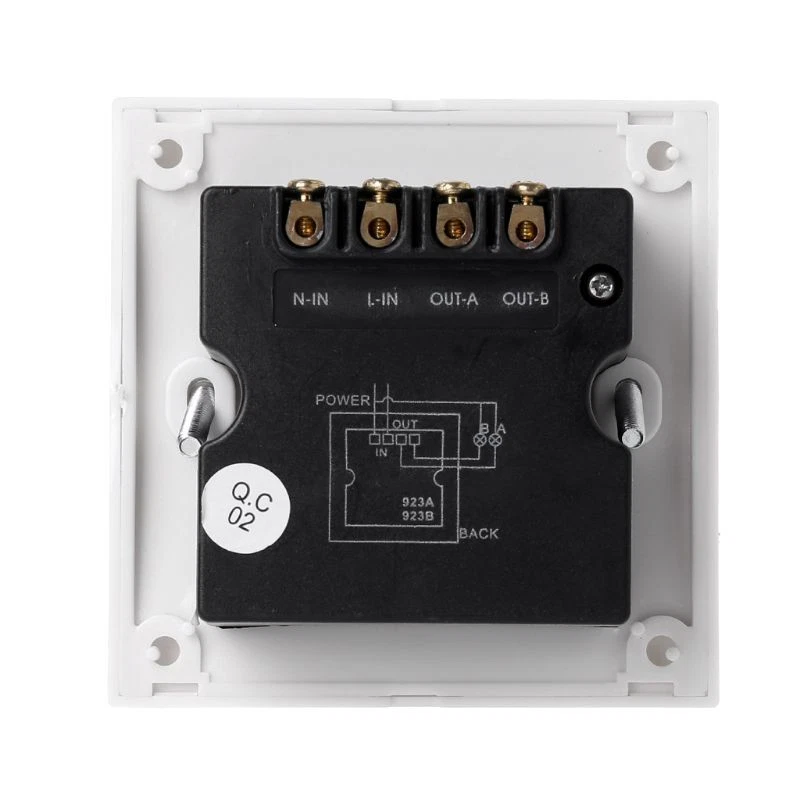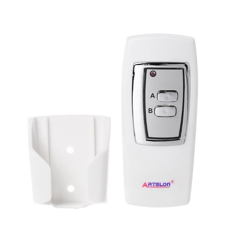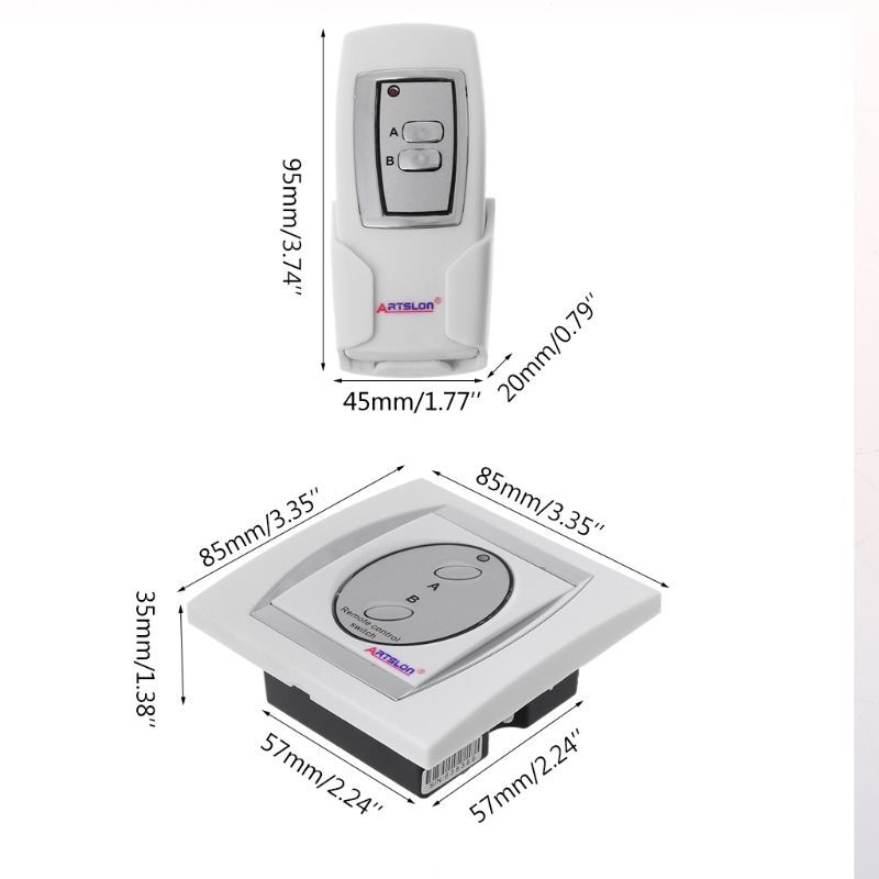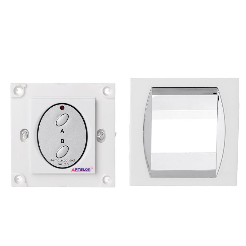 for Smart On Off RF Remote Control Light Timer Controller 2 Chan and high and high This is fixed wall 2 channels light ON/ OFF with remote control This is fixed wall 2 channels light ON/ OFF with remote control Uses pairing coding; high frequency encryption eliminates environmental Remote control is up to 50 meters, not obstructed by Remote controller and can be used simultaneously for ease and flexibility Remote & manual Makes your life more convenient Fast, easy installation Just a remote controller, you can easily control the electrical appliances at home Remote control powered by 23A/12V (Not included) Remote 50M Power limit: <= 500W per Channel Standard 86-type outer casing Input: 200V-240V (50-60Hz) Receiver Size: 85 x 85 x 35mm (L x for x Controller Size: 94 x 43 x 14mm (L x for x Color: White with Silver Uses pairing coding; high frequency encryption eliminates environmental Remote control is up to 50 meters, not obstructed by Remote controller and can be used simultaneously for ease and flexibility Remote & manual Makes your life more convenient Fast, easy installation Just a remote controller, you can easily control the electrical appliances at home Remote control powered by 23A/12V (Not included) Remote 50M Power limit: <= 500W per Channel Standard 86-type outer casing Input: 200V-240V (50-60Hz) Receiver Size: 85 x 85 x 35mm (L x for x Controller Size: 94 x 43 x 14mm (L x for x Color: White with Silver NOTE: For the indoor use only NOTE: For the indoor use only