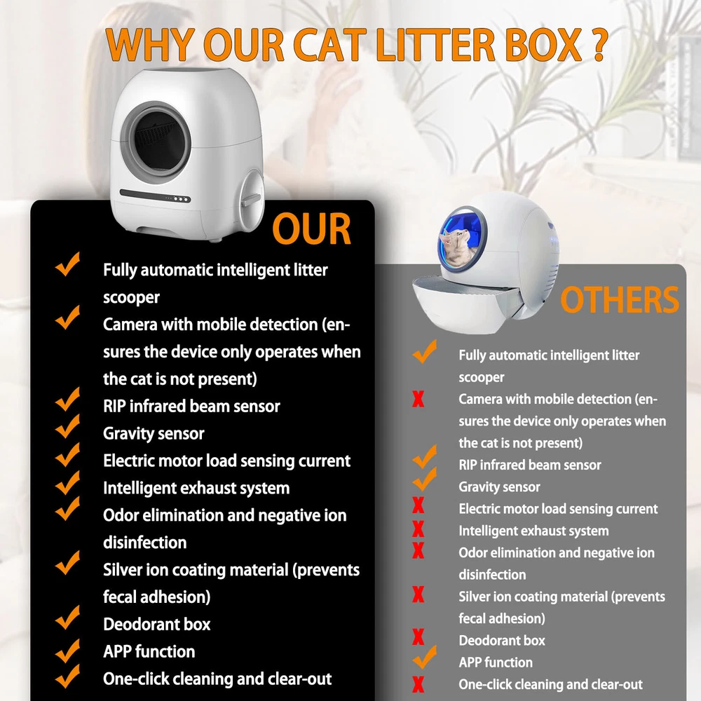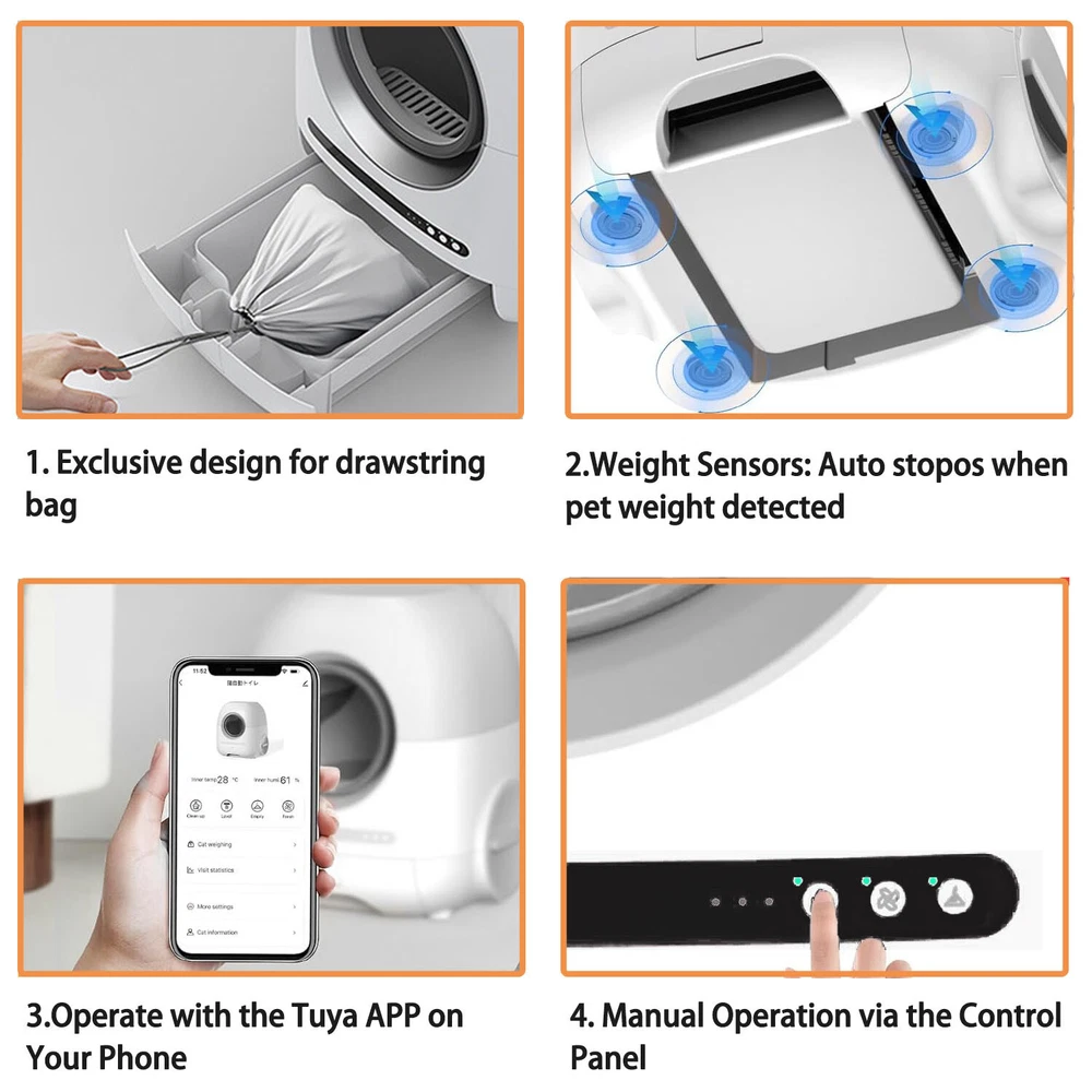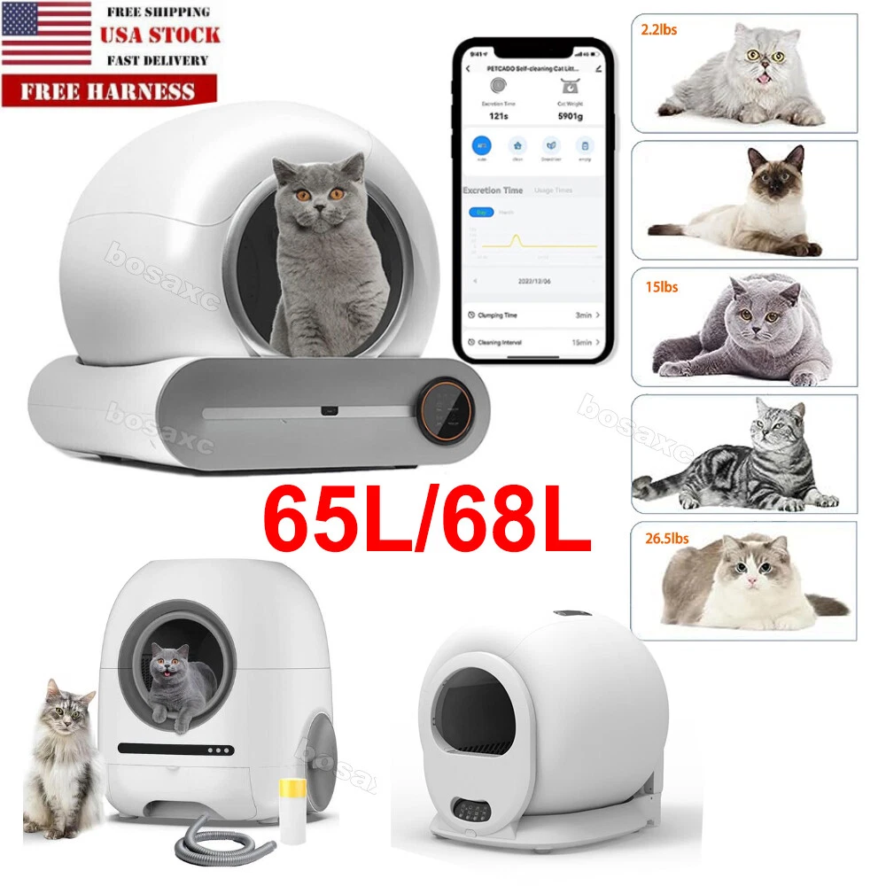 Smart Self Cleaning Cat Litter Box Automatic Cleaning Robot App Control WiFi 68L