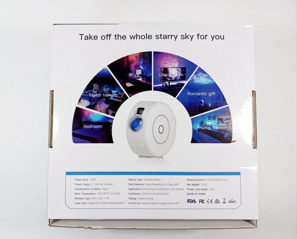 Smart Star Projector APP, Wifi, and Voice Controlled Free Shipping. RGB Color Setting - Choose the color you want. Scenic Lighting- Preprogrammed scenic lighting Works with Amazon Alexa and Google Home Free Shipping