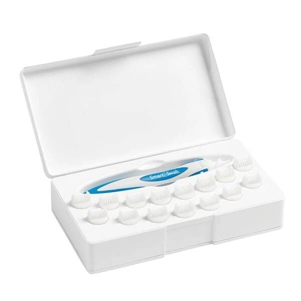 Smart Swab Soft Spiral Ear Cleaner Safe Ear Wax Removal Kit 16 Tips Included NEW. ✅ THE ORIGINAL SPIRAL EAR CLEANER: Smart Swab is the first and only innovative ear wax removing tool (AS SEEN ON TV!). Its patented technology is the best solution for safe ear wax removal! ✅ SAFE & PAIN FREE: Unlike cotton swabs that can go too far, the soft and flexible silicone head designed to extract wax safely and comfortably. ✅ EASY EARWAX REMOVAL: Simply place the spiral grooved tip into your ear, twist and remove your earwax. It’s that easy. ✅ INSTRUCTIONS: This product is safe for adults (men and women). To maintain a clean & healthy ear canal, we recommend using the product once a week. ✅ WHAT YOU GET: The set includes 1 reusable plastic handle, 16 disposable silicone tips and 1 storage case.