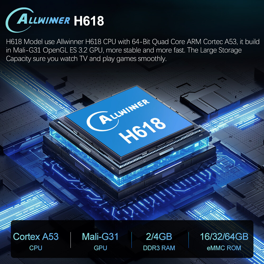 VONTAR H618 Smart TV Box Android 12 Allwinner Quad Core Cortex A53 Support 8K Video Wifi Google Voice Media Player Set Top Box Item Description VONTAR H618 Smart TV Box Android 12 Allwinner Quad Core Cortex A53 Support 8K Video Wifi Google Voice Media Player Set Top Box 1, Allwinner H618 Quad Core ARM Cortex A53; 2, GPU: Mali G31 MP2; 3, OS: Android 12.0; 4, Storage: DDR3 2GB/4GB, eMMC 16/32/64GB ; 5, Support: 8KVideo, 4K@60fps, HDR10+, H.265; 6, Support: 10/100M RJ45, Dual Wifi, BT4.0; 7, Support: Firmware Wireless Upgrade(OTA). 8, There are Three Options for VONTAR H618 Box: A: 2GB+16GB+100M+Dual Wifi+BT4.0; B: 4GB+32GB+100M+Dual Wifi+BT4.0; C: 4GB+64GB+100M+Dual Wifi+BT4.0; -1 x H618 TV Box -1 x Remote control -1 x Power Supply(5V/2A) -1 x HD Cable -1 x User Manual Important Reminders:Important Reminders:Important Reminders:Important Reminders: EU Countries: if order value is more than 150 EUR, you need to pay custom duty separately,when you receiving parcel 1.Shippment we will send the items within 7 days(working days) after receving your payment. 2.About Custom Duty If the parcel is strict inspected by custom, You still need to pay tax to clear custom. We won`t bear the customs taxes. If you have special requests, please contact us, we will provide all necessary document to help you clear custom. 3.Warranty 12 months Manufacturer's limited Warranty for defective items (excluding items damaged and/or misused after receipt). 4.About Feedback If you have any problem with product,delivery,service, please write email to us, we will response in 24 hours, please not open dispute directly. If you are happy with us,please give us 5 star feedback, we will offer some discount or gift for your new order. Payment Free Worldwide Shipping Shipping safe payment via paypal . Return 30 Day's returns