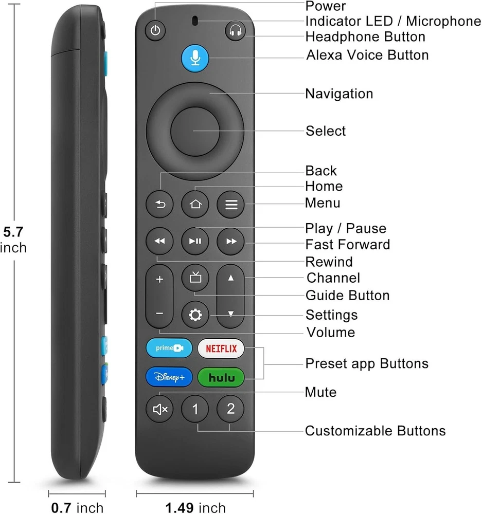Smart TV Remote Control with Voice Search & Custom Buttons for Easy Navigation ‹ › ‹ › ‹ › ‹ › ‹ › ‹ › ‹ › ‹ › ‹ › ‹ › Smart TV Remote Control with Voice Search Your ultimate companion for modern entertainment! Features: Broad Compatibility: This replacement voice remote pro is specifically designed for a wide array of Smart TVs, including Smart TV Stick 4K Max, Omni QLED Series, Toshiba Smart TVs, Insignia Smart TVs, and many more. Voice Search Activation: Enjoy hands-free navigation! Activate the voice function by following the simple instructions in the manual. Navigate to your favorite content with just your voice. Customizable Buttons: Tailor your remote to suit your viewing habits with 4 shortcut buttons and 2 customizable buttons that provide instant access to your preferred streaming services. Easy Setup: A straightforward setup process ensures you'll be enjoying your favorite shows and movies in no time. After-sale Assurance: Comes with a user manual, and we offer a 60-day after-sale service for any inquiries or assistance needed. Benefits: Streamline your entertainment experience with voice search functionality. Eliminate the hassle of tedious navigation with customizable shortcuts. Enhances compatibility with a variety of Smart TV models. Quick and easy setup saves you valuable time. We're here for you; enjoy peace of mind with our dedicated after-sale service. Why Choose Our Smart TV Remote Control? Transform the way you interact with your Smart TV! Our Smart TV Remote Control with Voice Search not only offers seamless compatibility with multiple models but also enhances your viewing experience with its intuitive voice navigation and customizable shortcuts. Bid farewell to complicated button presses and navigate your favorite shows with the clarity of your voice. Don’t let a cumbersome remote dictate your entertainment – upgrade to a smartly designed solution! Order yours today and immerse yourself in hassle-free streaming. Shipping Free & Fast Shipping - We offer free shipping to most of the USA with a normal delivery time of 3-7 days. However, due to the current situation, additional delivery time (up to 3 weeks) may be required for some items. Alternative Carriers - We may use alternative carriers (e.g. USPS, FedEx, UPS, etc.) to ensure your package arrives safely and on time. Due to the use of multiple carriers, we are unable to provide a tracking number automatically. Handling Time - Orders are processed and shipped within 1-2 business days of receiving cleared payment. Shipping Restrictions - Shipping to Alaska, Hawaii, Puerto Rico, Guam, and other US territories may incur shipping charges or delivery restrictions. Please contact us before ordering, or your order can be refunded/cancelled. State Restrictions - There may be restrictions based on your state of purchase. For example, certain items may not be shipped to California due to state regulations. Contact for Tracking Updates - If you require tracking updates or have any concerns about the delivery of your order, please feel free to contact us, and we will be happy to assist you. Return 30-Day Hassle-Free Returns - We want you to be completely satisfied with your purchase. If you are not, you can return the item within 30 days of receiving it for a full refund or exchange. Easy Return Process - To start a return, simply contact us and we will provide you with a prepaid return shipping label and detailed instructions. Restocking Fee - There are no restocking fees for returns. However, the buyer is responsible for return shipping costs if the return is not due to a seller's error. Refund Processing Time - Refunds will be processed within 5 business days of receiving the returned item in its original condition. Payment We accept all major credit cards, PayPal, and Apple Pay for your convenience. Your payment information is secure and encrypted to ensure a safe and seamless transaction. Please complete your payment within 3 days of purchase to avoid any delays in shipping. Feedback Your feedback is extremely important to us. We strive to provide the best products and customer service possible. If you are satisfied with your purchase, please take a moment to leave us a positive review. If you have any concerns or issues with your order, please contact us before leaving negative feedback. We are committed to resolving any problems and ensuring your satisfaction. Contact Us If you have any questions or concerns, please feel free to reach out to our customer support team. You can contact us through the eBay messaging system. We are available Monday to Friday, 9:00 am to 5:00 pm EST, and we will do our best to respond to your inquiry within 24 hours. Buy it now and enjoy a pleasant shopping experience! UPC: Not Set Unit Quantity: 1.76 Item Height: Fire TV Remote Replacement Item Length: Fire TV Remote Replacement Item Width: Fire TV Remote Replacement Year Manufactured: Not Set Compatible Brand: Not Set Compatible Model: Fire TV,Smart TV Stick 4K (1st/2nd Gen),Smart TV Stick Lite,Smart TV (3rd Gen),Omni QLED Series Smart TVs,Omni Series Smart TVs,2-Series Smart TVs,4-Series Smart TVs Features: Wireless,Voice search,Customizable buttons,4 shortcut buttons,Easy pairing,Intuitive voice control Connectivity: Wireless Brand: Unbranded Type: Voice Remote Model: Fire TV Remote Replacement Wireless Range: Less Than 5 m MPN: Not Set Unit Type: oz Color: g25n8l Country/Region of Manufacture: Not Set Manufacturer Warranty: Not Set