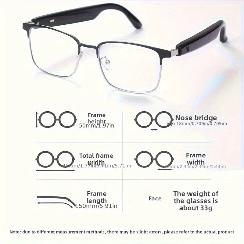 Experience the seamless blend of style and smart technology with our Wireless Glasses, model gs03. These innovative glasses feature automatic color-changing lenses, providing both UV protection and convenience. The Bluetooth connectivity allows for easy pairing with your devices, enhancing your audio and visual experience. Crafted with attention to detail, these glasses are a product of China's meticulous manufacturing process, ensuring quality and durability. Embrace the future of eyewear with a unit that marries traditional design with modern functionality. New Wireless Glasses, UV Glasses, Smart Glasses, Automatic Color Changing Lenses, Touch Control, Built-in Microphone, High-resolution Audio, Wireless, Rechargeable Battery, Anti Blue Light, Suitable For Office, Outdoor, Sports, Driving, Music Playback, Handheld Phone Calls - Ideal Holiday Gift. Power Mode: Battery Powered Operating Voltage: ≤36V Battery Properties: Rechargeable Battery Rechargeable Battery: Lithium Battery-Polymer Connectivity Technology: Wireless Wireless Communication Technology: Wireless Water Resistance Level: Non-waterproof Battery Capacity Copy Origin: Guangdong,China