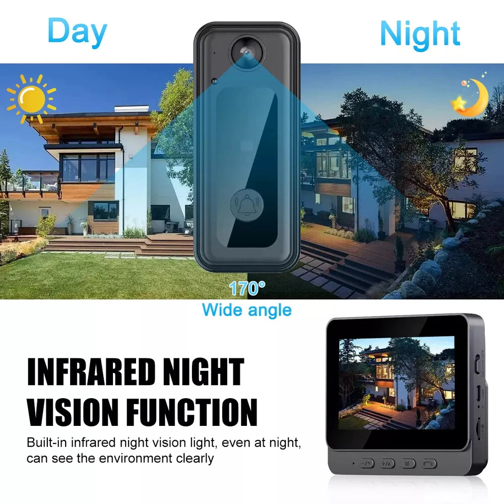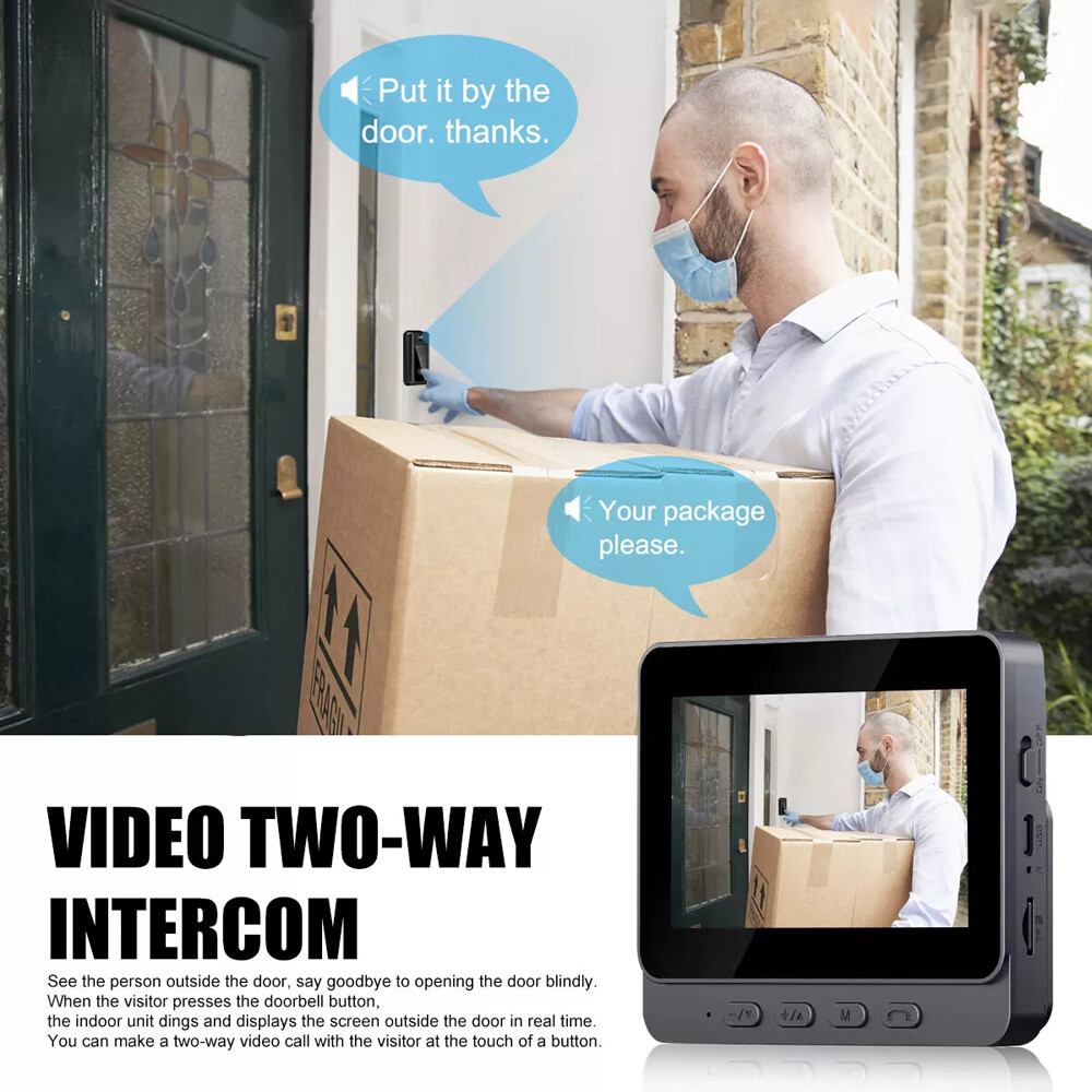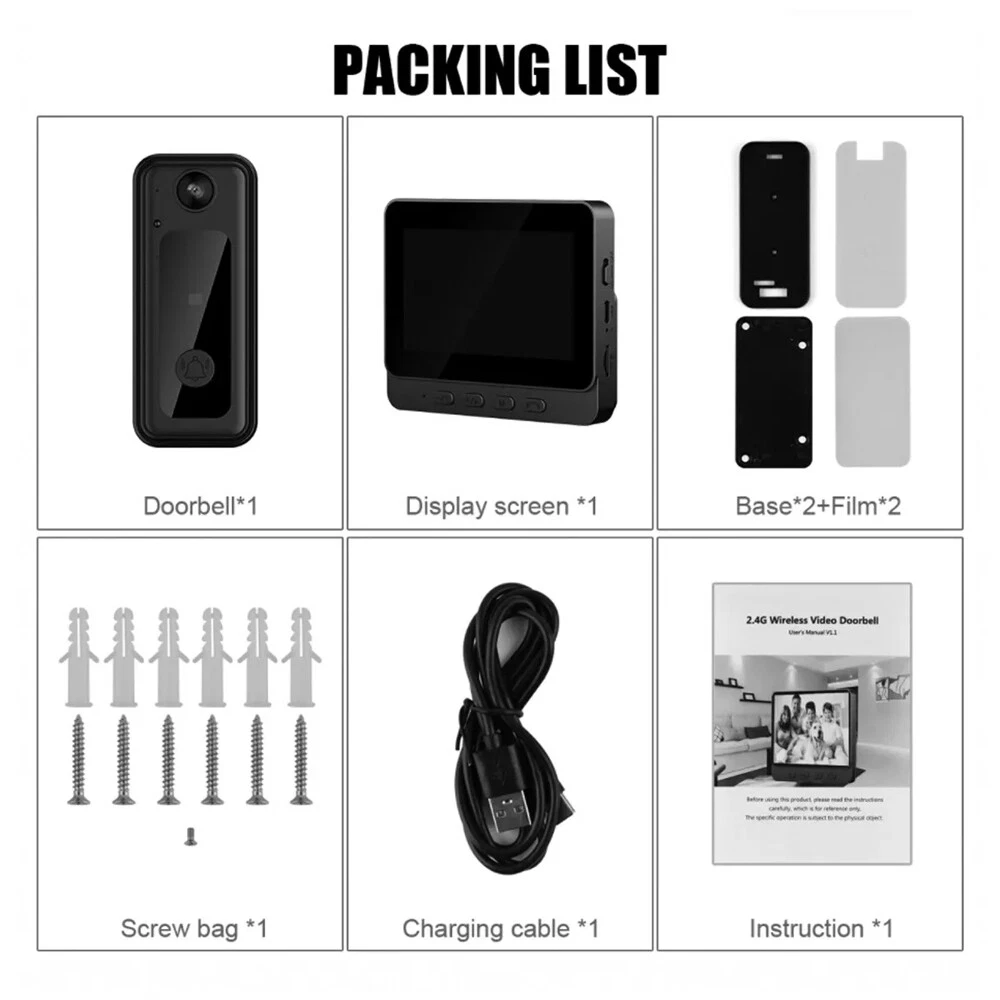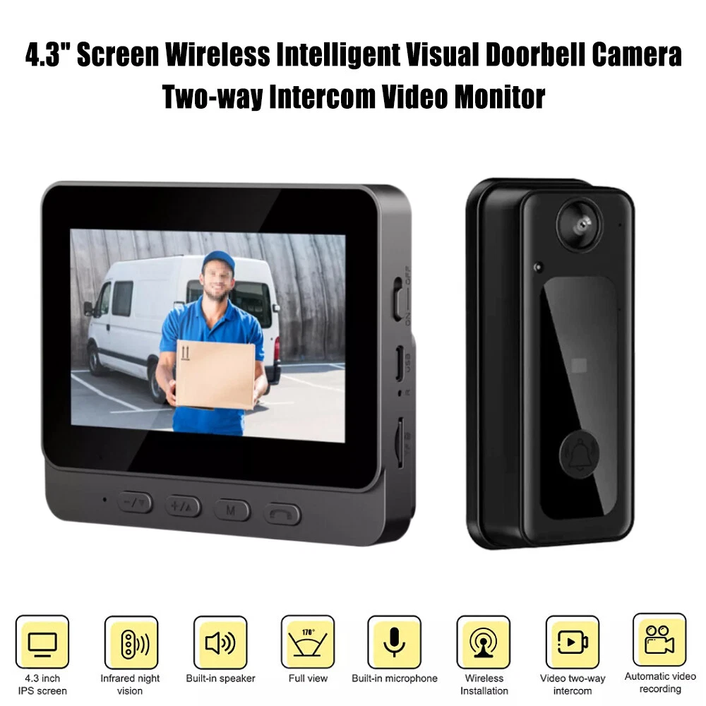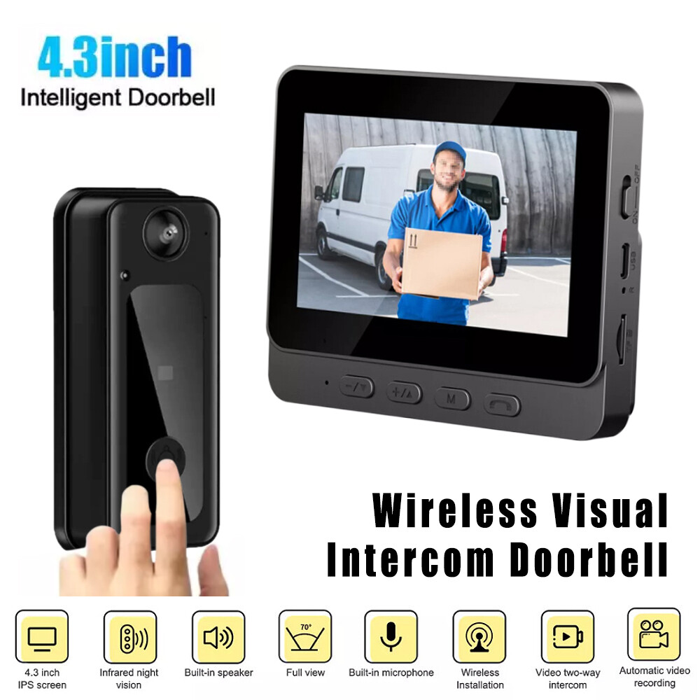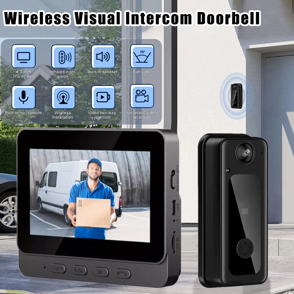 Smart Visual Intercom Doorbell 4.3 Inch IPS Screen Video Monitor Camera Doorbell Description: The 4.3-inch IPS screen 2.4G Wireless visual intercom doorbell is a smart home device designed to protect home safety. It has a two-way intercom function, which can achieve interactive communication with visitors. This product has a high-definition wide-angle lens, which can provide a clear and broad field of view. In addition, it has an ultra long battery life, providing users with long-lasting usage time. This doorbell has a wide field of view and is equipped with an 800W fisheye wide-angle lens, providing a 170 ° ultra large wide-angle view. Clear and visible images can be obtained from top to bottom and from left to right. In addition, it is equipped with a high-definition night vision device and LED dark scene fill lights, which can automatically turn on at night, ensuring clear visibility even in dark environments. Features: 【Enhanced Home Security】: This 2.4 wireless video doorbell provides an extra layer of security for your home. With its smart visual intercom feature, you can easily monitor who's at your door and communicate with them without opening the door, ensuring your home's safety. 【High Definition Wide Angle】: Equipped with an 800W fisheye wide-angle lens, this doorbell offers a 170° super wide-angle view. It provides a clear, broad view from top to bottom and left to right, allowing you to see everything clearly. 【Long Battery Life & Easy Installation】: This wireless doorbell boasts a long battery life, ensuring it's always ready when you need it. Plus, with its wireless BT connectivity, there's no need for internet connection, wiring, drilling, or installation. It's easy to set up and use. 【Automatic Photography & Built-in Storage】: The doorbell automatically captures high-definition images when the bell rings, providing you with clear visuals of your visitors. It also features built-in storage, allowing you to keep a record of your visitors for future reference. 【Clear Night Vision】: With its LED dark scene supplement light, this doorbell ensures clear visibility even at night. The light automatically turns on in the dark, allowing you to see who's at your door clearly regardless of the time. Specifications: Display Screen: 4.3-inch IPS screen Power Supply: DC5V/2A Audio Information: Built-in speaker and microphone Connection Method: BT interconnection S/D card:Maximum support 128G/MJEPG format [Not included] Perspective: 170 ° Night Vision Type: LED auxiliary lighting,6 infrared light fill light Working Temperature: -10 ° -60 ° Operating humidity: 10%~90% Wireless Distance: Open 100m/328ft, other 20m/65.6ft Supported Format: MJEPG Image sensor: GC0328 / 85 degrees Pixel: 1080P Charging interface: Type-C Battery Capacity: 1000mAh. After being fully charged, press 10 times a day for up to 2 months (the further the distance, the more severe the power consumption) Language: English,Chinese,Korean,Russian,Japanese, French,Ltalian, German and other 12 kinds of. Notes: 1. The monitor needs to be connected to an external power source for long-term use. 2. The built-in battery is only for temporary use. 3. Do not use without an external power source for a long time. Operation mode: 1.Install the doorbell in the doorway where it is convenient to remind, you can choose the base fixing or film sticking fixing, or can be used together. 2. The screen can be placed in a good location for reminding, the screen can be fixed on the wall or placed on the table or cabinet. 3. The product can be adjusted brightness, prompt volume, date and time, language, etc., press the M key to enter, -, + sign up and down, the phone key to confirm entry, exit can press the M key. 4. Doorbell answer intercom, key answer key and can be. Packing List: 1 x Wireless Doorbell 1 x Display 1 x Charging Cable 1 x User Manual 1 x Large Base Plate 1 x Small Base Plate 1 x Large Back Sticker 1 x Small Back Sticker 1 x Screw Set Payment Shipping Terms of sales About us Custom Payment We accept Paypal and majoy credit cards payment or the other as eBay rule. When you place an order, please choose a shipping method and pay for the order including the shipping fee within 48 hours. And please make sure your current address correct after your payment within 1-2 days! Shipping About Shipping 1. Receiving time = Handle time + Shipping time 2. Processing Time: Around 1-5 Days 3. Shipping Time: 10-15 Days By Air Mail 3-10 Working Days By Express We do not guarantee delivery time on all international shipments due to differences in customs clearing times in individual countries, which may affect how quickly your product is inspected! Please Note: S&H Does Not Include Duties, Locatl Taxes or Any Other Importation Fees.the Buyer Needs to Cooperate with the Local Customs for Customs Clearance Any Customs Duties Incurred Shall Be Paid by the Buyer Seller Are Not Responsible for Any Custom Duty or Import Tax. Note: >Transit Time Is Best Estimated But NOT Guaranteed As Transit Time Varies >Orders may be subject to import taxes, customs duties and fees levied by the destination country.Additional charges for customs clearance must be fulfilled by the recipient; We no control over these charges, nor can we predict what they may be. Terms of sales 100% Customer Satisfaction Is Our Top Priority For Any Reasons You Are Not Satisfied With The Products Within 30 Days Of Purchase, Return Or Exchange Can Be Issued, Customers Are Responsible For The Return Shipping Cost And Subsequent Replacement Shipping Cost For An Exchange Item. Replacement Item Will Be Processed And Shipped Upon Return And Inspection Of The Original Item. Return Items Must Be In Their Original Packaging And Unused Condition, Or They Will Be Rejected And Sent Back To You. Due To The Nature Of The Products We Sell, We Carefully Inspect All Packages Prior To Shipping. All Of Our Products Are Sold As Brand New, All Damaged Products Are Considered Damaged 