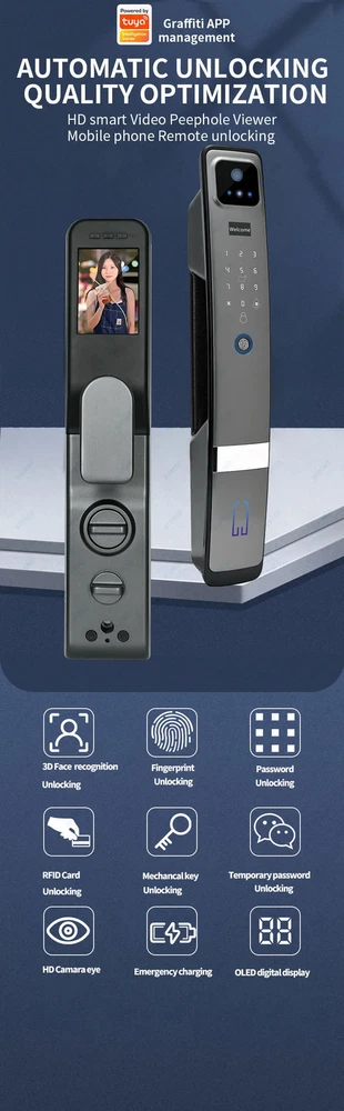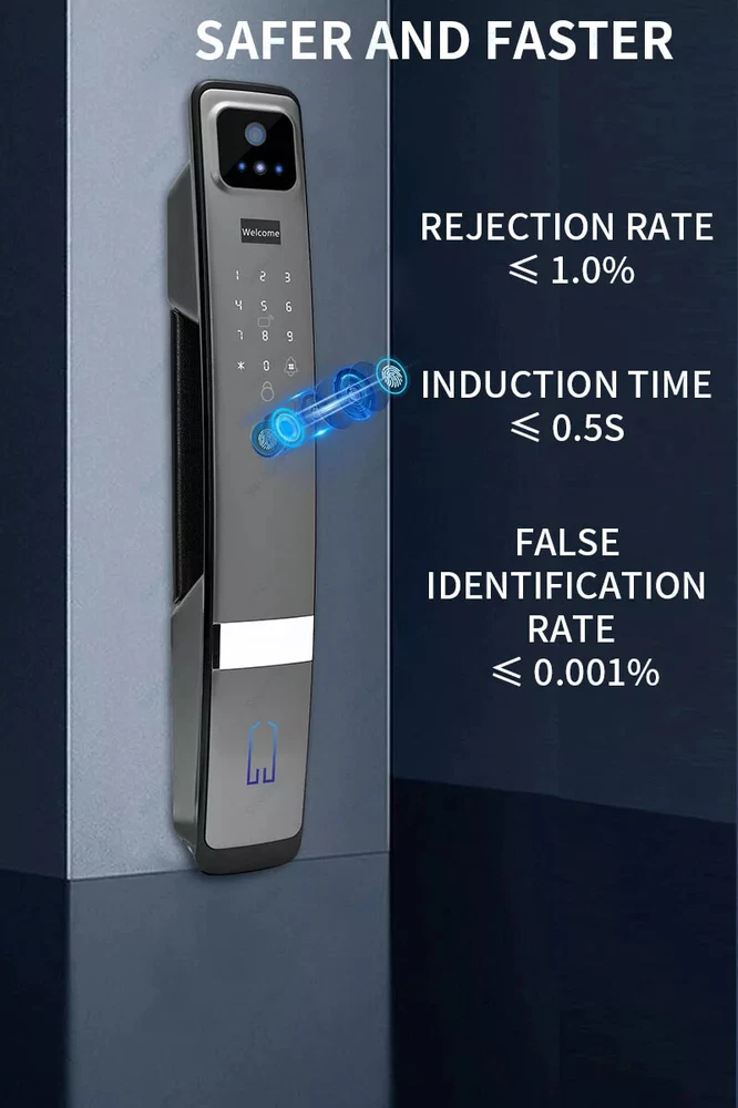 This smart door lock is a game-changer! The fast fingerprint and 3D face recognition work flawlessly, and the WiFi connectivity lets me control access remotely. Installation was easy, and the sleek design looks great on my door. No more fumbling for keys—just a quick scan, and I'm in. Super secure and convenient!