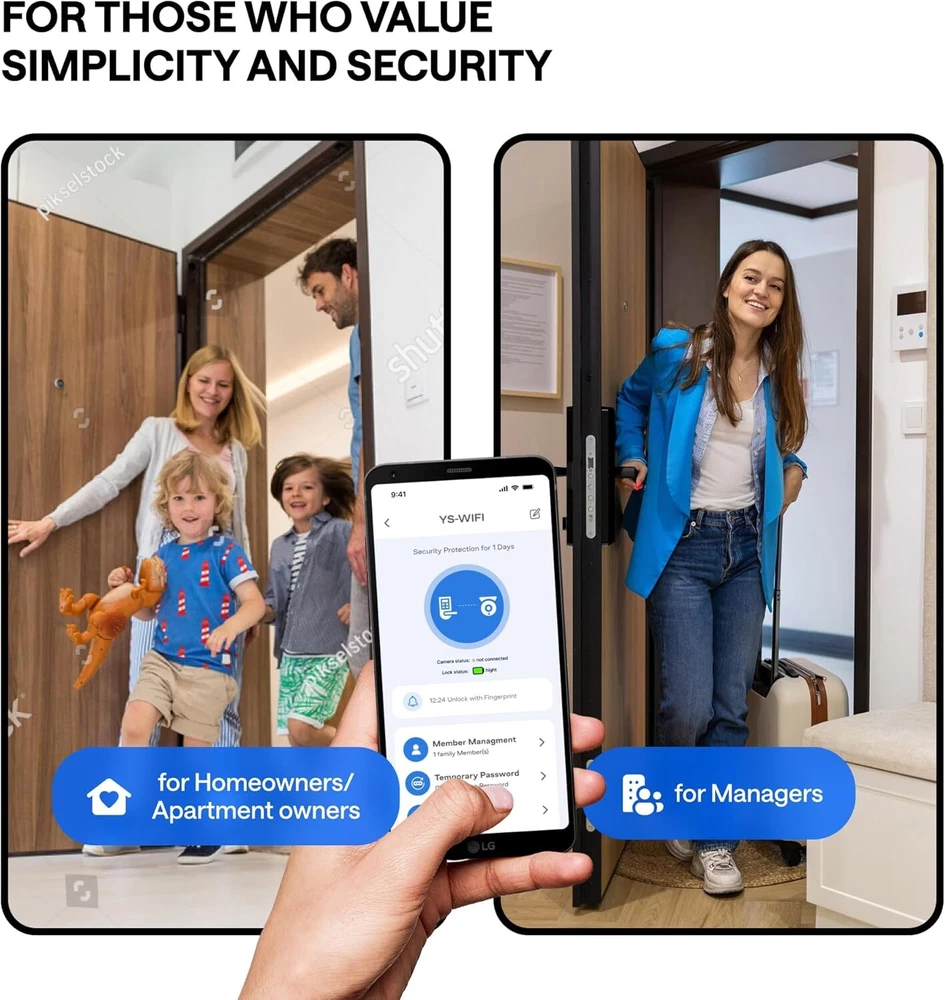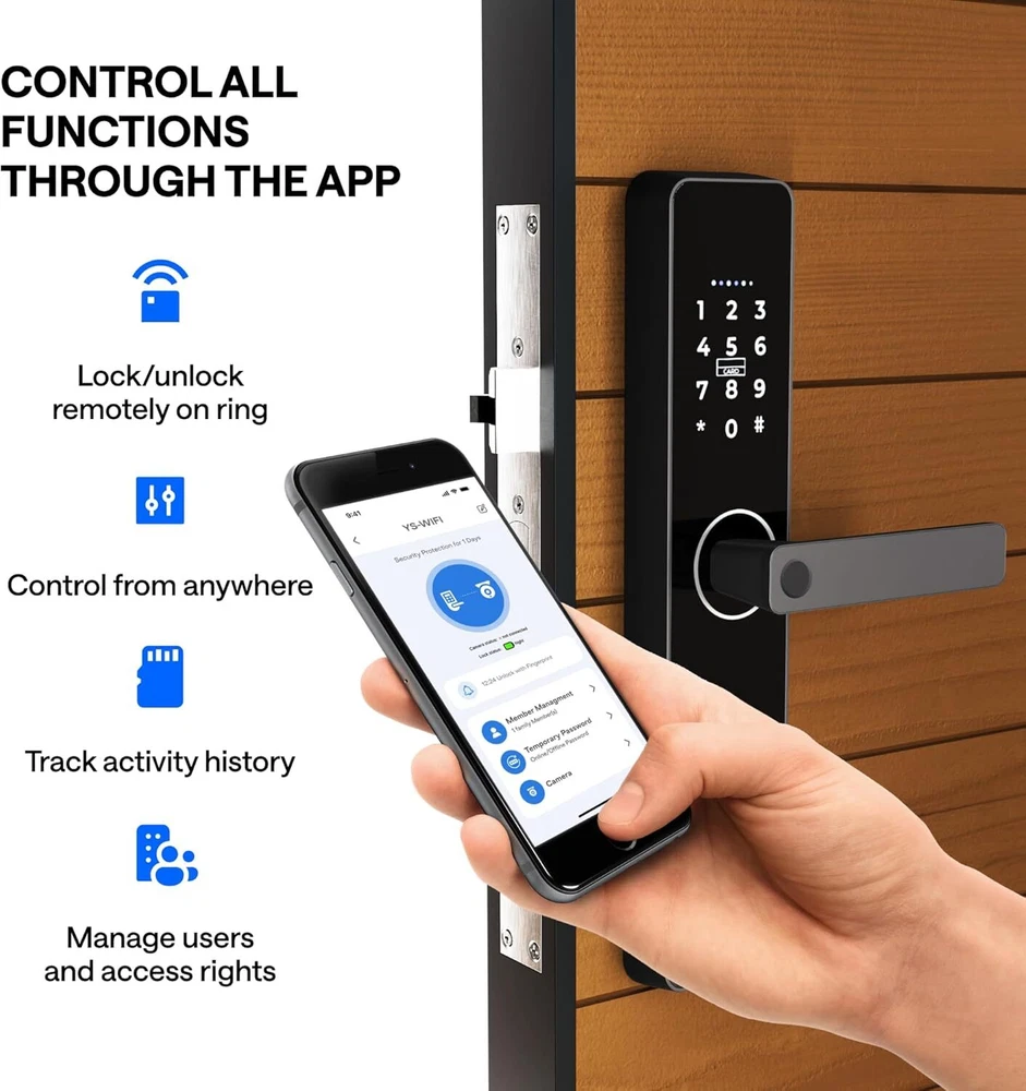 Smart Mortise Lock with WiFi Camera, Installation Kit - Digital Keyless Entry Door Lock Deadbolt with Handle Set - Card, Keypad, Fingerprint, Passcode - Electronic Smart Door Locks for Front Door Video Smart Lock with Camera: ensure advanced home security by installing our digital door lock with keypad set; unique among smart locks for front door, our WiFi door lock comes with a camera to screen visitors from the app on your phone 5 Ways to Open & Lock: our app allows to view and open the door to a visitor from anywhere; this keypad lock for front door with handle can also be opened via passcode, key, Touch ID (like biometric or fingerprint door lock), or card For Hosts & Rental Owners: this automatic door lock is perfect for parents, renters, property managers, seniors; our keyless door lock app can generate passcodes for the clients to open our smart door knob without your intervention Easy to Install, Full Set: aside from electronic door lock with handle, our package contains everything to install our deadbolt smart lock with no extra drilling or a locksmith, including a full user manual for our passcode door lock Battery Powered, USB for Emergencies: while normally our electric door lock runs on batteries, it has mini USB port to connect a power bank & continue operating the key pad door lock with handle when you have no access to batteries Shipping We offer FREE shipping on all orders! We ship within Three business days of payment, usually sooner. Local pickups and combined shipping options are not provided at this time. Return You can return a product for up to 30 days from the date you purchased it. Any product you return must be in the same condition you received it and in the original packaging. Please keep the receipt. Payment We accept payment by any of the following methods: PayPal Please pay as soon as possible after winning an auction, as that will allow us to post your item to you sooner! Feedback Customer satisfaction is very important to us. If you have any problem with your order, please contact us and we will do our best to make you satisfied. Contact Us If you have any queries, please contact us via ebay. We usually respond within 24 hours on weekdays. Please visit our eBay store to check out other items for sale! Thank you for shopping at our store.