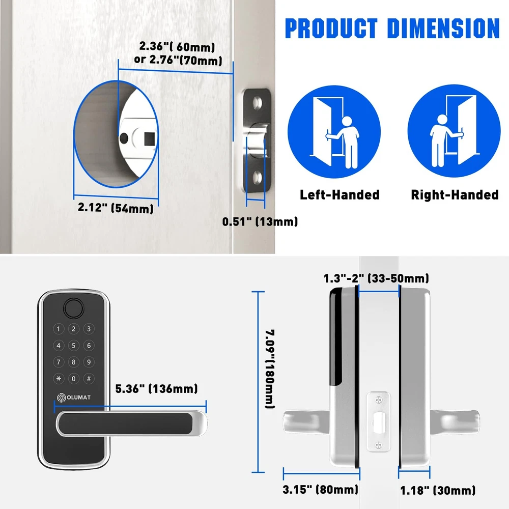 Smart Lock [8-in-1 Keyless Entry Door Lock] Fingerprint + Passcode + Fob + Wireless Fob + Smart Phone + Physical Key + Auto Lock +One Time Pin Code. Never worrying about forgetting keys and lock yourself out. [Homeowners & Rental Hosts] smart door lock is a great solution for Airbnb short-term rentals, rental property management and self-housing residents. Generate passcodes remotely and share with your visitors. [Easy installation] This code door lock is a perfect fit for most American front doors. Easy to install in minutes with just a Philips screwdriver. No extra drilling or wiring required. No locksmiths needed. The door handle can be reversible for both left and right handed doors. [Remote control / Wifi door lock]] Pair with a WiFi gateway (Optional accessory, sold separately), you can lock/unlock your smart door lock anytime anywhere, remotely set up door codes and view real-time access log. [Stylish and Guaranteed] The App / Software is free to use forever. No hidden charges or long-term costs. 30-day money-back guarantee, 1-year product warranty and lifetime customer support following the date of purchase.