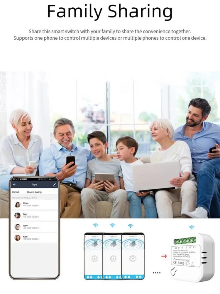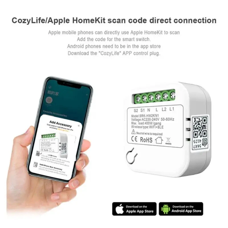 Smart WiFi Switch Mini Smart Circuit Breaker Smart Home Kit Module Voice Control For Homekit/Alexa/Google Homepage/AliGenie Description: Product information: Product Name:Smart Homekit Modul Product color:white Input Voltage:100-240V 50/60Hz Rated current:Max 16A*2 Product Size:47.3*47.3*20mm Button life:100000 times Plastic material:ABS Fire Rating:94-V0 Wireless Standards:WiFi 2.4GHz Compatible:for Homekit/Alexa/Google Home/AliGenie Specifications: Feature: - Cozylife and Homekit: dual platform control, can use Cozylife app and Apple home app at the same time - Apple phone can scan the code to connect directly to the device (no need to connect to the hotspot and no gateway) and also can use Alexa, Googlehome, Xiao Ai classmates, Tmall Genie, Xiaodu and other third-party voice platforms through the cozylife App - Share this smart switch with your family to share the convenience together.Supports one phone to control multiple devices or multiple phones to control one device. Package Included: 1*Smart switch. 1*Manual