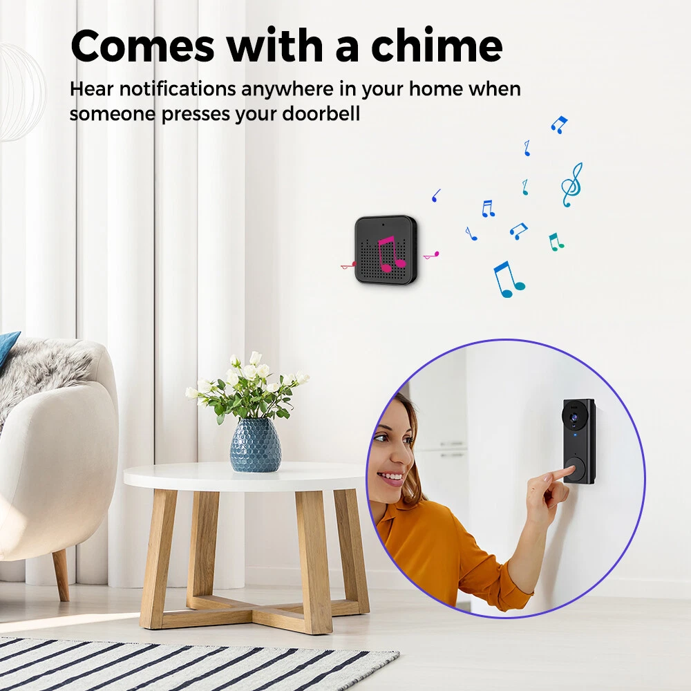 Features: Note:Not support 5G and Bluetooth connection 1. Two-way Audio Video: The doorbell camera has a built-in microphone and speaker system, which provides two-way high-fidelity conversation all the time. You can have a real-time video talk through the APP with whoever in front of the outdoor camera on any occasion and situation. 2. 2.4Ghz WiFi Compatibility & Easy Installation: The doorbell camera connects only to 2.4GHz WiFi and does not support 5GHz WiFi. Ideal for apartment renters, it offers a no-drill setup with adhesive tape or screws 3. Wide-Angle: Captures clear HD video with a 120° wide-angle lens; enhanced night vision up to 33 feet ensures detailed monitoring, making this wireless doorbell camera essential for outdoor security. 4. Excellent night vision: Six infrared LEDs combined with smart infrared sensors enable continuous monitoring and produce clear video even in dim light conditions. 5. Storage Options: You can save photos and videos directly in the video window. The photos and videos are saved in the APP and can be downloaded to your mobile phone album. 6. Hassle-Free Charging: The visual doorbell is powered by 1200mAh rechargeable battery. Use the included USB cable with a DC 5V 1A or 5V 2A power adapter (adapter excluded). Specification: APP:ULOOKA Storage: Free forever Cycle days: 30 days Battery capacity: 1200mAh Battery life: about 1-3 months [depending on usage] Input voltage: 5V 1A Charging interface: Type-C Product size: Doorbell 1.69*0.62*4.17in, Ding Dong 1.77*0.62*1.96in Night vision function: Supports APP active wake-up: Supports Visual distance: 5 meters System support: Android or iOS 9.0 and above versions Note: 1. The product does not support memory card expansion 2. Storage is free without monthly rent. If you need video materials, please download and save them in advance. 3. The product does not have human body detection function, but you can actively wake up the doorbell in the APP to monitor the situation outside the door. 4. The doorbell is only compatible with 2.4G wireless WIFI network. Please choose a location with good signal for installation. Packing List: 1 * Doorbell 1 * Doorbell base+film 1 * USB Chime Receiver 1 * Charging cable 1 * Screw bag 1 * Instruction manual