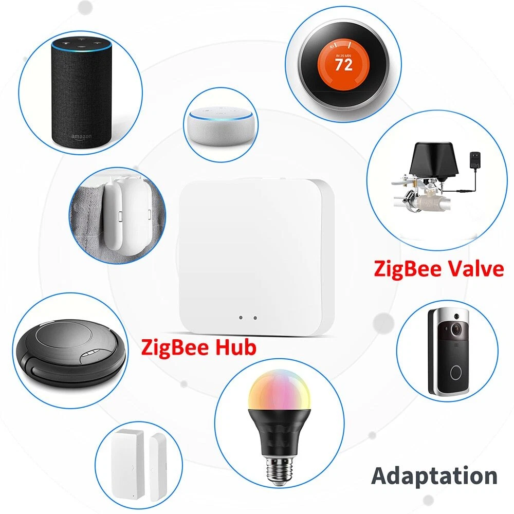 Smart Irrigation System If you're interested, please click below link: NOTE: Below Video product is WIFI Tuya Smart Valve. ZigBee version need to add hub first, then add to app under zigbee hub. WiFi&ZigBee Alexa, Google voice Command is the same operation. THIS SMART VALVE CONTROLLER IS ONLY COMPATIBLE WITH BALL VALVES WITH LONG LEVERAGE SHOW IN THE IMAGES. Please Pull the ring to manually shut off the valve if power supply is off. Tuya Smart Valve Features: WiFi & ZigBee Tuya Smart Valve Controller WiFi VERSION can work standalone! ZigBee Version need to add TUYA ZigBee Hub. A Smart Add-on for your Existing Water or Gas Ball Valve Simply add this smart valve controller to your water valve or gas shutoff valve, you can simple control the water supply or turn off gas valve from anywhere at any time with your smartphone, using free Smart Life app. Works with Amazon Alexa and Google Home When paired with the Amazon Alexa or Google Assistant, the smart shut off valve gives you hands - free voice control over your home. Voice Command: "Hey, Google, Turn ON/OFF DEVICE NAME" "Alexa, Turn ON/OFF DEVICE NAME" Wide Application The smart shut off valve is compatible with water pipe ball valves, electric/ manual control switches, and natural/ liquid/ tap gas valve. Enjoy home automation like automatic irrigation of garden, farmland; timing water supply for feeding farm, stockyards; remote control the gas valve when you are leaving home in haste. Easy Installation & Pipe Size Just need screw to fix over your existing levered ball valve, no addition plumbing required. With specially designed metal clamping ring, it is adjustable to compatible with most widely used pipe size like 1/2", 3/4", 1" Share with your families and set time schedule The smart controller allows you to setup multiple users, and you can also set time schedule to turn on/ off your garden yard sprinkler at certain time. Specifications: Power adapter input: 100V-240V Power adapter output: DC12V 1A WiFi: 2.4GHz only Radio Range: 30 meters Valve pressure: 1.6 meters Valve pressure: 1.6MPA Time off valve auto: 5-10 seconds Time off valve electric: 5-10 seconds Torque: 30-60kgf.cm Power cord: 2.3 meters (0.9 meter from power adapter, 1.4 meter from the body) Power cord extendable with 5.5x2.1mm size DC male-famale cord. ZigBee Smart Valve--NEED WORKS WITH HUB Real-Picture Installation