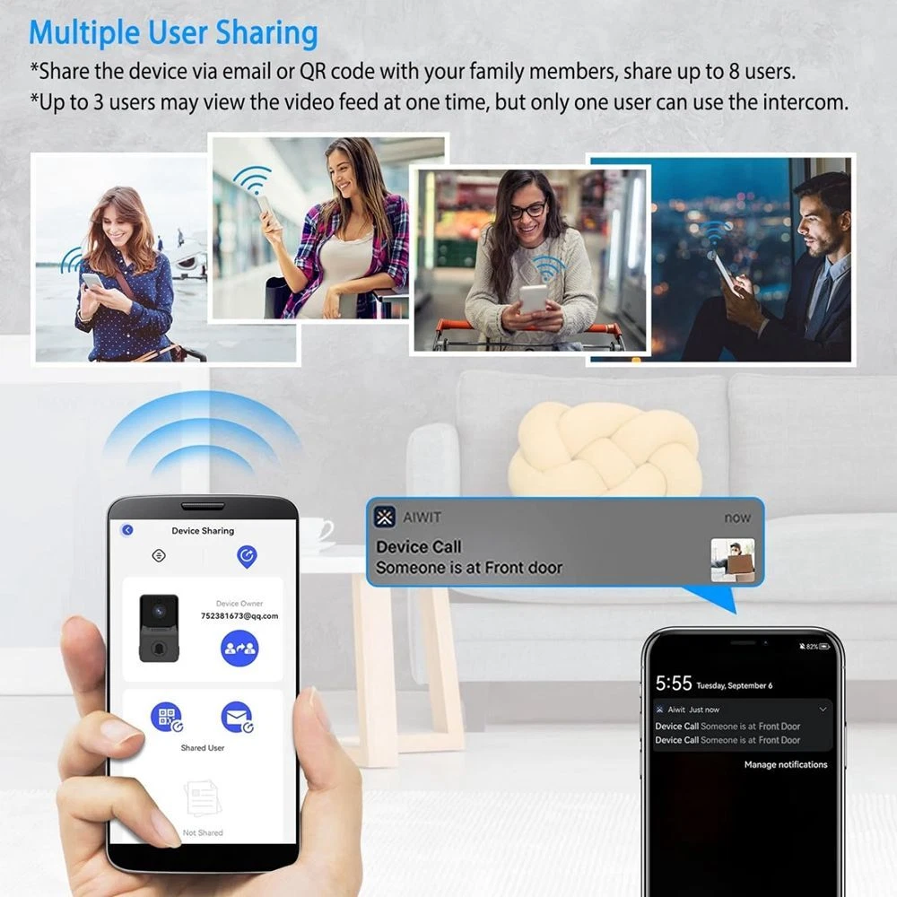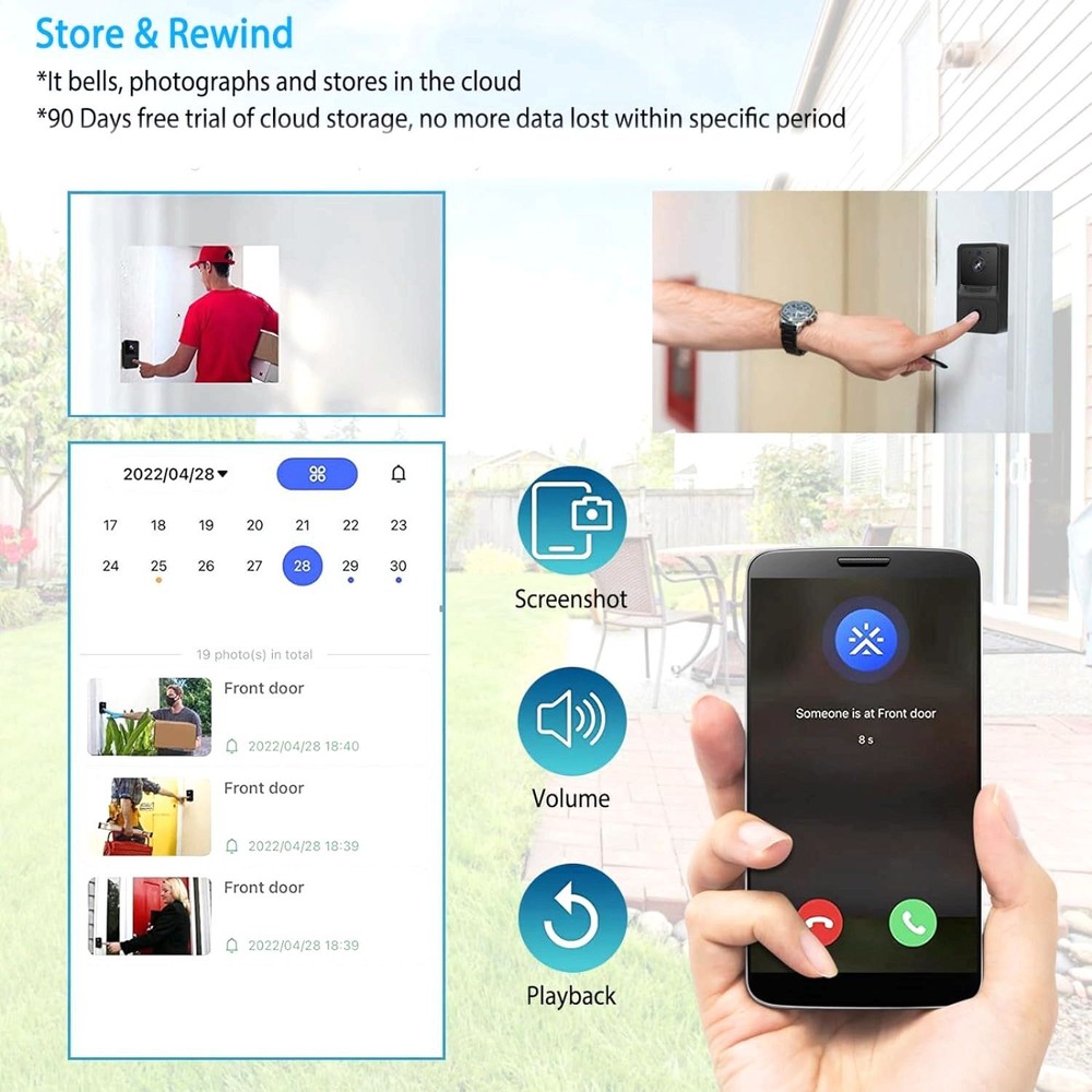 Smart Visual Doorbell Electronic Cat Eye Wireless Monitoring Night Vision Camera Description: 【 Intelligent and Portable 】 The doorbell can be controlled through the app "Aiwit", with automatic working mode and intelligent portability. The volume and weight are both portable, making installation and disassembly very convenient. 【 Visual two-way intercom 】 With intelligent wifi configuration, remote transmission does not require opening the door, and the phone can be used outside the door, reducing accidents caused by misoperation. The built-in microphone and speaker are used for two-way communication. You will only receive a push notification for "device call" on your phone when a visitor rings the doorbell, and you can answer and enter a video call. It does not support real-time two-way video calls and monitoring, only supports taking some photos and pushing video calls when someone rings the doorbell. 【Multi user sharing】 The wireless doorbell has a group sharing function, which can share devices with family members through email or QR code, and can share up to 8 users. Up to three users can watch videos at a time, but only one user can use the walkie talkie. 【High definition infrared night vision】Advanced night vision function with 2 built-in 850nm infrared lights that can automatically switch according to the surrounding brightness. Even in the darkness, it can be captured very clearly. Automatically switch to night vision mode in low light conditions. 【 Extra long standby+cloud storage function 】 Extra long standby, no disassembly cycle charging, built-in polymer high-capacity battery. Free cloud storage function for 3 months, you will need to purchase it at your own expense in the future (you can choose if you don't want to buy it), and purchase the corresponding size of cloud storage according to your needs. Features: Product size: Doorbell Size: 8.1 * 4.2 * 2.5 cm /3.15*1.65*0.98 in, Dingdong Size: 6.4 * 4* 3.9 cm / 2.52*1.57*1.54 in APP: Aiwit Color: Black Material: Plastic Network connection: Only applicable to 2.4G wifi, not 5g Package Included: 1 x Doorbell Camera 1 x Indoor Wireless Chime 1 x Double-sided Adhesive 1 x USB Cable 1 x Screws Pack 1 x User Manual Payment Delivery details Terms of sales About us Contact us Payment 1.We accept many payment methods. 2.The item will be shipped to buyer’s CORRECT and VERIFIED Ebay Address. 3.We are not responsible for the package lost due to incorrect address. 4.Our price do not including any custom or duty, VAT and local tax. 5.Payment must be received within 7 days of winning the auction 6.Please contact us if you need file an extension for any late payment. Delivery details 1.All item are shipped via DHL eCommerce or USPS Frist Class express Service within 2 business days once full payment is settled.If you can't get your items in time,please contact to us first,we will check and solve it for you soon.We will reply your mail within 24 hours normally. Sometimes have a little delay due to the weekend or holiday.If you can't get our mail after 48 hours,please check your spam or contact to us with other mail address or via ebay. 2.We only ship to confirmed Ebay addresses. Your Ebay address MUST MATCH your Shipping address. 3.If you want to change the address please E-mail us right after you pay for the item. 4.SERVICE TRANSIT TIME is provided by the carrier and excludes weekends and holidays. Transit times may vary, particularly during the holiday season. 5.If you have not received your shipment within 30 days from payment, please contact us. We will track the shipment and get back to you as soon as possible with a reply. Our goal is customer satisfaction! Terms of sales 1.Please contact us via eBay Message if you have NOT received item in 30 days , we will check it with post office, and then resend or refund any missing item. 2.i n the unlikely event that your product is faulty in anyway, you must contact us ASAP and then return it within 7 Days of receipt. 3.Return shipping fee should be paid by buyer if wrong item you bought (wrong model or wrong color) and item is defective. We will provide replacement or refund after we received and confirmation. 4.if you need return, please contact and get an address for return from us, then declare your package as “Return”, write your Ebay ID and item number outside About us 1. Dear buyers, we appreciate your business, if you are satisfied with our service, 2. Please leave us a positive feedback and rate the details of the transaction (Detailed Seller Ratings) with a "PERFECT 5 Star. 3. Your recognition will make us more confident to develop business and serve you better. 4. Our goal is to make sure you are a happy buyer and pleasant shopping with us. Please email us before leaving any 1 or 2 ratings, negative feedback or open any dispute. We understand the concerns and frustrations you might have, and will do our endeavor to resolve the issues. Please give us the opportunity to resolve any problem. Contact us 1. We strive for 100% customer satisfaction on every sale we complete. 2. If, for any reason you are not satisfied with your purchase, please contact us before leaving neutral or negative feedback. We will work with you. 3. We are wholesaler and exporter and we have served thousands of customers from all over the world. 4. Our products are direct from factory , there is no middle man, no high markup, so we can provide quality items yet very competitive price. 5. If you have any questions please contact us by email, most emails are responded within 24 business hours. 6. We work 6 days (Mon to Sat) a week. (Note: Bidders who use free email like AOL, Yahoo, the reply email may fall into your junk mail box. 7. Please send email directly or try send email by other account.) The feedback forum is not the place to leave us a message. 8. These email systems are known to occasionally block incoming emails from eBay or eBay sellers. 9. If you never hear from us please go t