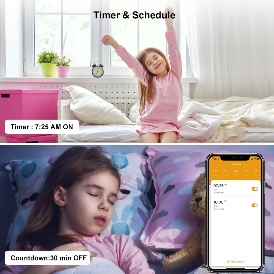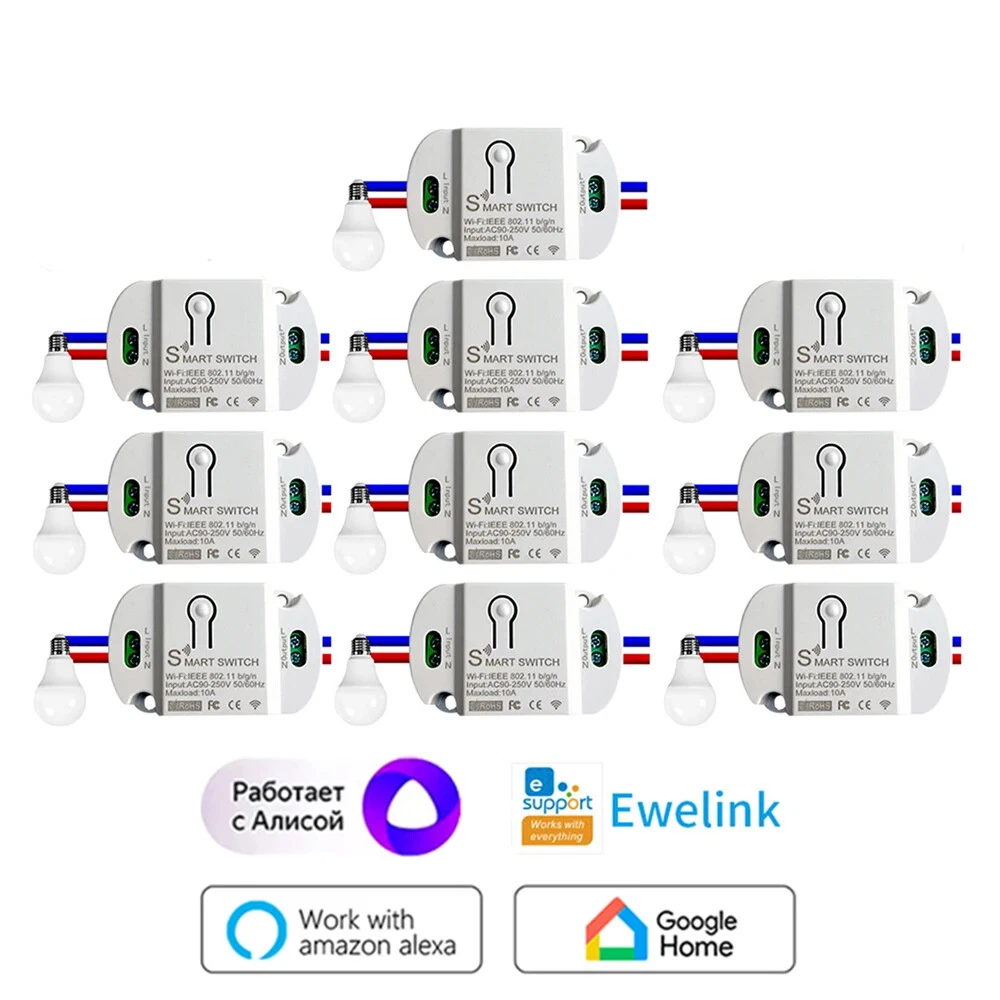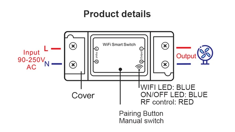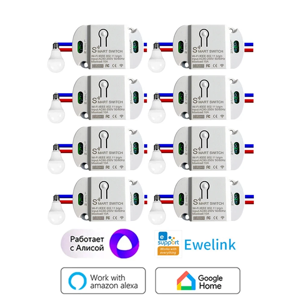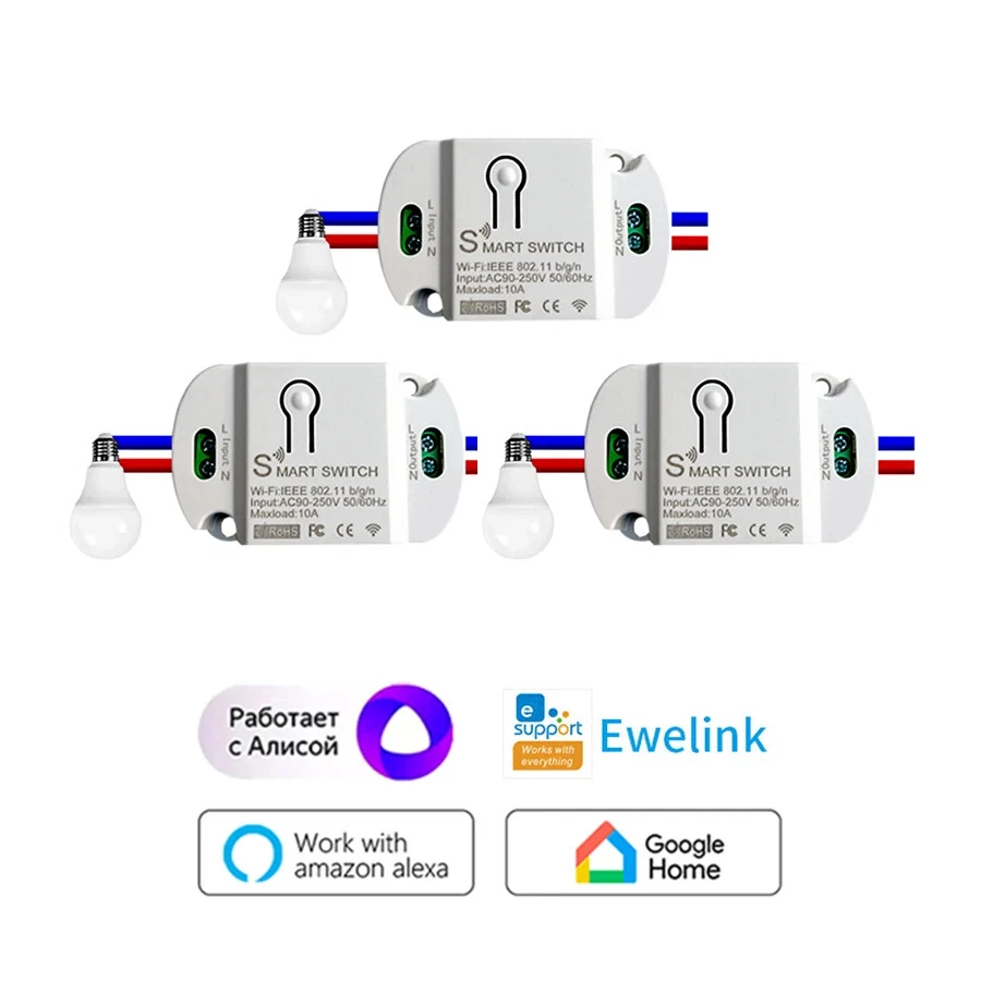 Tuya DIY smart switch introduction DIY WiFi Smart Light Switch Universal Breaker Timer Wireless Remote Control Works with Alexa Google Home Smart Home Automation Here we have TWO versions of Smart Switch Breaker, TUYA Version and eWelink Version. And the details for each version list here: TUYA Version: Main Features: I.Voice control:once you have this switch,you can connect it with Amazon Alexa(Amazon echo/dot/tap) or Google Assistant for voice control. II.Wi-Fi Remote Control:You can use "Smart Life" APP in your smart phone to control the switch wirelessly with Wi-Fi or 4G network.no hub required. III.Timing Function:Take full control of your home or office lights thanks to schedule timer that will allow you to plan the exact time to turn lights and appliances on/off automatically IV.Share Device:This samrt switch can have several control sites shared by different family members.one mobile phone can control many switches also. V.Add More Features with IFTTT:'If this,then that' is a free web-based service the let you do amazing things with your light switch, turn lamps,fans or other electronics on before you back home or off, Supporting IFTTT as well. Product information Current: 10A Material: Plastic Switch Type: Remote control Power Supply: Neutral+Live wire Rated Voltage: AC 90V-250V / 50-60Hz Rated Power: 1800W Wireless standard: IEEE802.11b/G/N Safety: WEP/WPA-PSK/WPA2-PSK Radio protocol: Wi-Fi 2.4GHz b/g/n Static power loss: Less than or equal to 0.3 WEncryption: WEP/AES/TKIP Max Load: 10A Voice control Voice control to Switch on or off the lights Share Control Timer and Schedule set up timing schedules to save the trouble of overcooking the dish single / repeat /countdown / loop timer APP remote control Connection Diagram eWeLink DIY smart switch introduction Model Number: eWelink smart switches State of Assembly: Ready-to-Go name: mini WiFi ewelink remote smart switch voltage: AC 90-250V 50/60Hz rated current: 10A resistive load: 2200W(AC220V) inductive load: 500W(AC220V) capacitive load: 200W(AC220V) incandescent lamp: 2200W energy-saving lamp: 300W LED lamp: 300W WiFi standard: IEEE 802.11 b/g/n 2.4GHz APP: ewelink APP material: ABS V0 How to connect Tuya/Smart Life APP