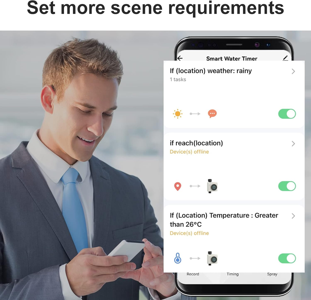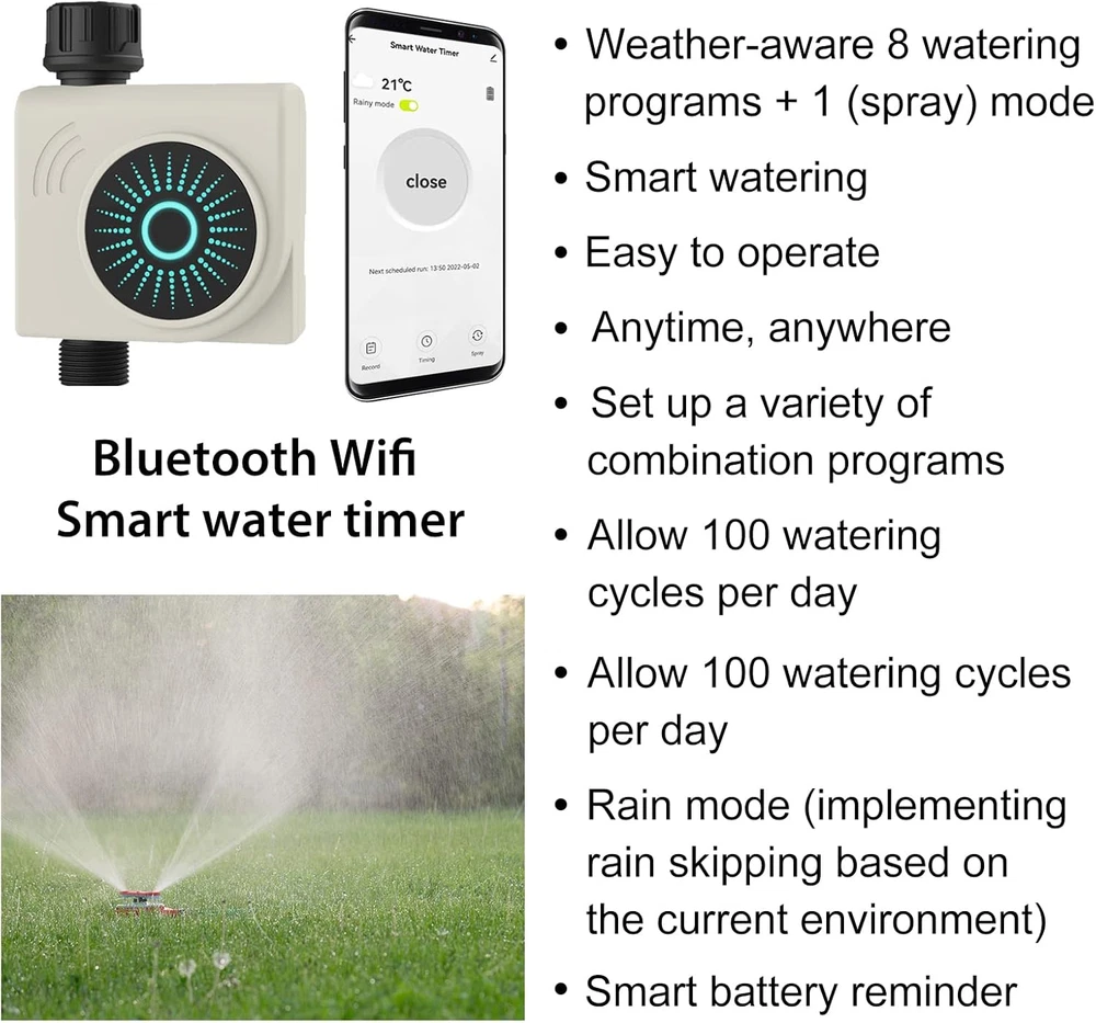 This smart water timer is a game-changer for my garden! The app makes scheduling watering a breeze, and the strong signal ensures reliable control. No more wasted water or overwatering—just a lush, healthy lawn with minimal effort. Installation was quick, and the wireless design is super convenient. Highly recommend for hassle-free irrigation!