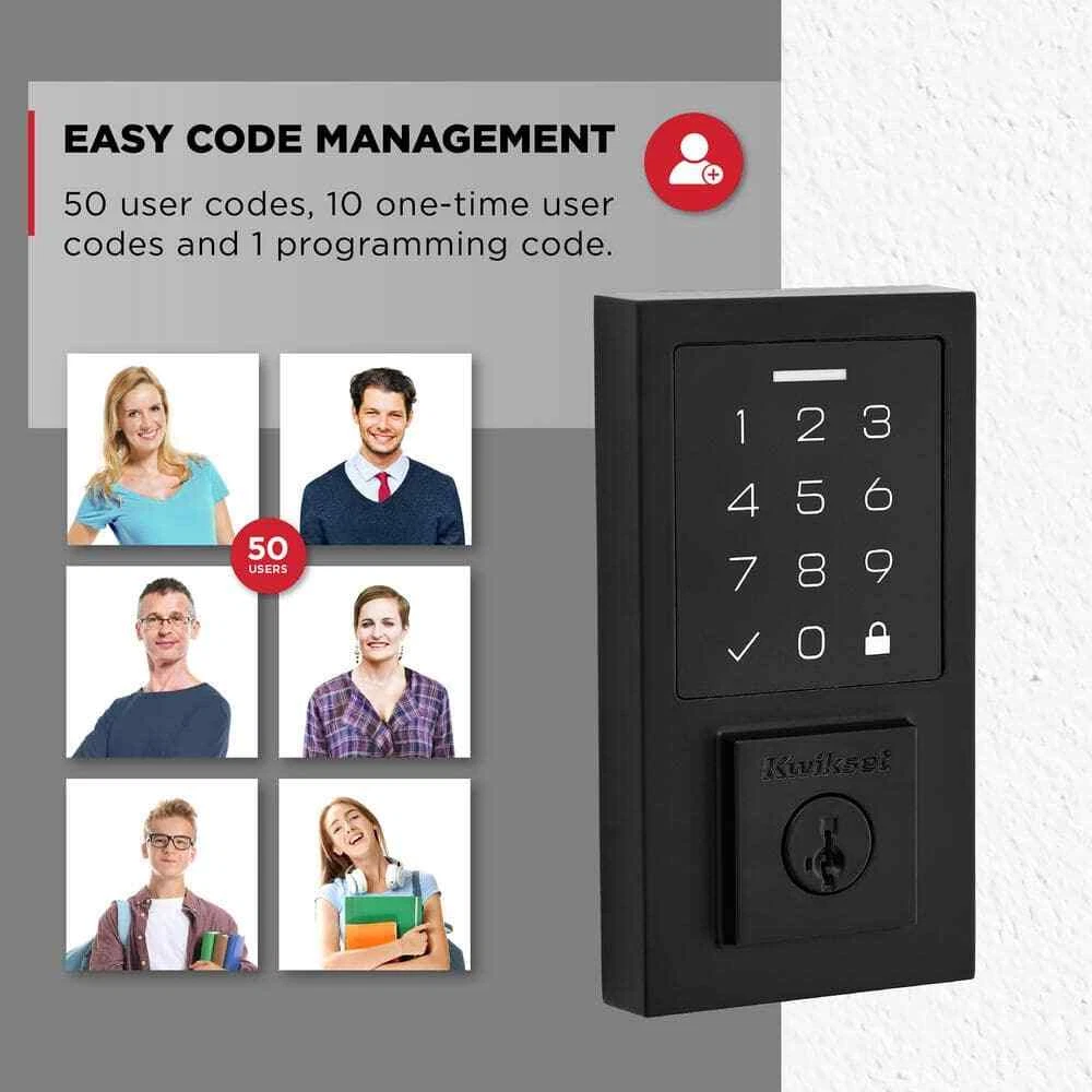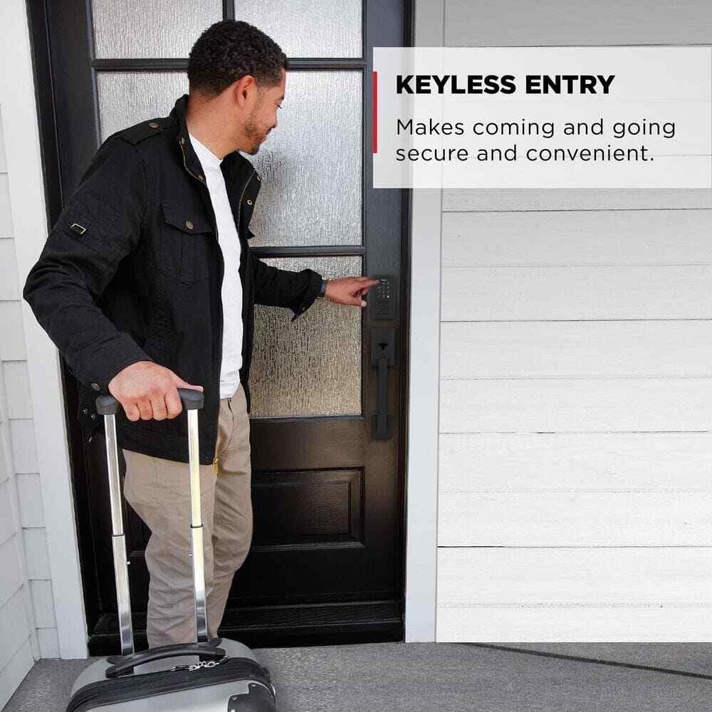 Add a level of style and security to your home with the SmartCode 270 touchpad keyless entry electronic deadbolt. Designed with a sleek contemporary style to complement your home's interior, you can secure your home and never have to worry about keys. To gain entry, simply enter your personalized code, while locking is as easy as the touch of a button. SmartCode is easy to install, program and use and utilizes 4 AA batteries. It also features SmartKey re-key technology as the back-up keyway. The deadbolt is operated by electronic touchpad and key outside and turn-piece inside. The crisp, clean appearance of the Matte Black finish reinforces the deadbolt's modern design. Highlights Convenient keyless entry: touchpad entry makes coming and going secure and simple, easily lock and unlock your door without having to take out your keys Certified advanced security: security, durability and finish are grade 2 BHMA certified, which is up to 2.5x stronger than grade 3 BHMA certified lock sets Auto-lock: enjoy security and peace of mind knowing your door can lock itself, customize it to automatically lock every 30 sec, 1 min, 3 min, 5 min or 10 min 12-month battery life: battery lasts at least 12 months, giving you more time in between battery replacements. uses 4x AA alkaline batteries (batteries not included) Easy code management: customize up to 50 user codes, 10 one-time user codes and 1 programming code that lets you edit or delete user codes whenever you need to Easy install and BILT app: installs with just a screwdriver, BILT 3D interactive instructions provide voice, text and animation guidance for an easy installation Intrusion alert: after 3 consecutive incorrect code entries, the lock sounds an alarm and disables the keypad for 1 min to prevent anyone from tampering with it Vacation mode: activate vacation mode to temporarily disable the keypad, and feel safe knowing no one can operate your door lock when you’re out of town Easy low light code entry: bright LED lights illuminate the touchpad so you can easily enter your user code at night, Simply tap the touchpad to turn on the lights Smartcode deadbolts come with BILT 3D interactive app instructions with voice, text and animation guidance for the easiest installation experience Smartcode deadbolts offer an optional programming code feature for improved access code management where a programming code is required to add or delete user codes Lifetime limited mechanical and finish warranties 1-year limited electronics warranty Deadbolt offers UL certified 20-minute fire rating Smartcode deadbolts are easy to install, program to use and operates on 4 Amper batteries with 12-month battery life (batteries not included) Easily remove the interior cover in seconds to access the batteries or programming button no screws to remove Small interior cover form factor for improved aesthetic 3 incorrect code attempts trigger an audible alarm and 60-second lockout for increased security Audible beep and visual flash when batteries are low power