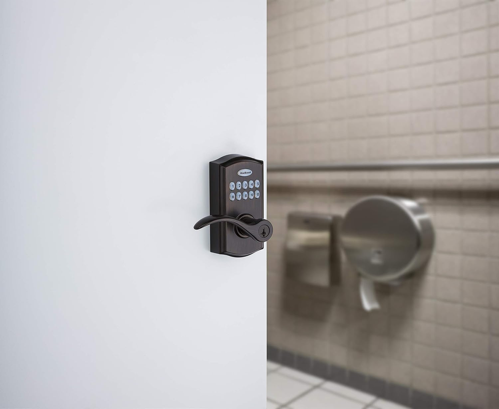 CONVENIENT KEYLESS ENTRY: Keypad entry makes coming and going secure and simple. Easily lock and unlock your door without having to take out your keys 3-YEAR BATTERY LIFE: Battery lasts at least 3 years, giving you more time in between battery replacements. Uses 1x 9V battery, battery included HIGH TRAFFIC DURABILITY: Lock tested to 500,000 cycles to ensure lasting, reliable performance in high-traffic entryways EASY CODE MANAGEMENT: Customize up to 30 user codes, 1 one-time user code and 1 programming code that lets you edit or delete user codes whenever you need to 3 LOCK MODES: Easily switch between Auto-Lock and Passage modes with the turnpiece. Disable the turnpiece to stay in Auto-Lock mode — ideal for public restrooms CERTIFIED ADVANCED SECURITY: Security, Durability and Finish are Grade 2 BHMA Certified, which is up to 2.5x stronger than Grade 3 BHMA Certified lock sets INTRUSION ALERT: After 3 consecutive incorrect code entries, the lock sounds an alarm and disables the keypad for 1 minute to prevent anyone from tampering with it EASY LOW LIGHT CODE ENTRY: Bright LED lights illuminate the keypad so you can easily enter your user code at night. Simply tap the keypad to turn on the lights The kwikset smartcode 955 light commercial electronic lever offers convenient keyless entry, making coming and going secure and simple. With a 3-year battery life and a tested durability of 500,000 cycles, it delivers reliable performance in high-traffic entryways. Choose from three lock modes to suit your needs: auto-lock requires a key or code for entry, passage allows continuous access, and disabling the turnpiece keeps the lever in auto-lock mode. Available in traditional and transitional designs and satin nickel, satin chrome, venetian bronze and matte black finishes, it’s a simple solution for secure and versatile access control.