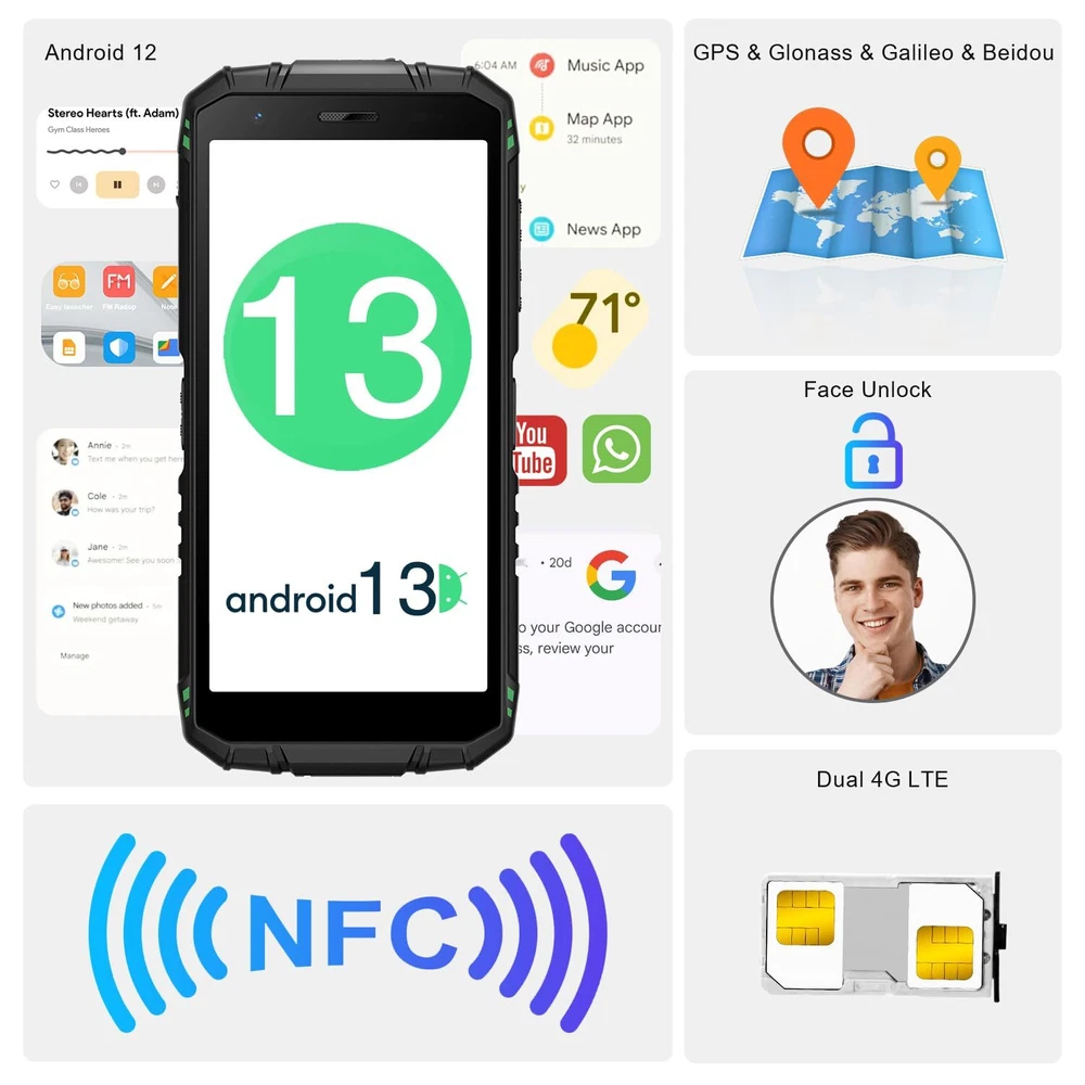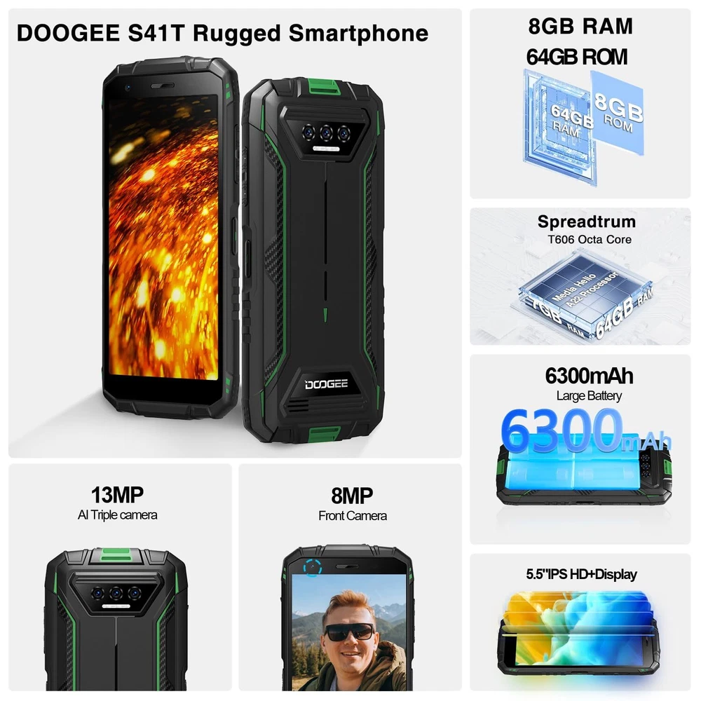 6300mAh Massive Battery:DOGGEE S41T rugged smartphone unlocked is equipped with a 6300 mAh large battery to provide all-day power for your outdoor adventures or long shift work without interruption. Long-lasting unlocked android phones battery uses up to 15 days on standby, 2-3 days of normal use, and 29 hours of calling. 64GB Storage & AI Triple Camera :S41T rugged smartphone with 13MP Triple Rear Cameras, allowing you to freely capture the moments and beauty of the world. and stunning selfies with a 8MP front-facing camera to capture crisp moment. 8GB RAM(4GB+4GB Extended RAM) and 64GB ROM (available for expanding micro SD card up to 1TB - SD card not included rugged phone unlocked ensures enough storage to store the images. IP68/IP69K Rugged Smartphone:S41T ugged phone unlocked is made of tough stuff and complies with harsh environments using standards which is passed IP68/IP69K and MIL-STD-810H tests outstandingly. Feature excellent protective military grade rugged smartphone is worry free on dropping from 6FT height onto the ground, fully submerging into 4FT depth water 30mins, dusty or sandy complete covering. Dual SIM 4G Phone:S41T Rugged phones unlocked is compatible with GSM T-mobile, not work with AT&T and new Cricket, Verizon. (Please check the compatibility with your local frequency band before purchasing) Supported frequency bands: FDD: B1/2/3/4/5/7/8/12/13/17/18/19/20/25/26/28A/28B/66 TDD: B38/40/41 WCDMA: B1/2/4/5/8 GSM: B2/3/5/8 Support EDGE/GPRS. Satisfaction Guaranteed:Please confirm compatibility with your carriers before purchase our dual sim cell phone! is committed to providing our consumers the absolute best value and quality on our entire line of rugged smartphones. As rugged smartphone valued members you have - 2-year free warranty, 30 days of money back without reason, 7/24 professional team here to serve you with any problems.