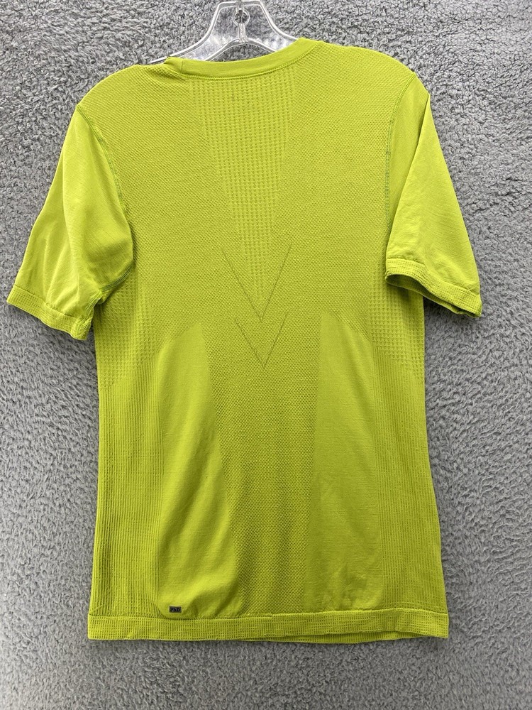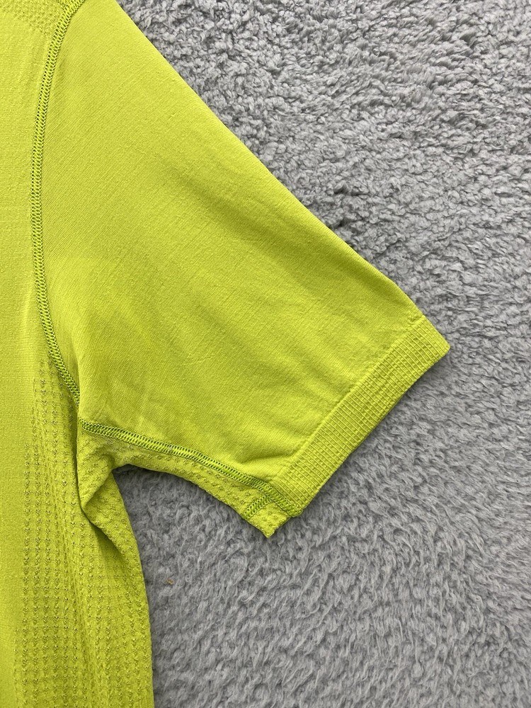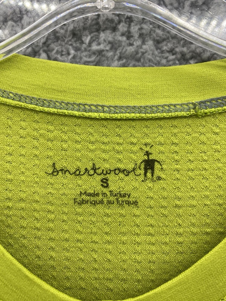 This SmartWool T-Shirt features a Crew Neck and Short Sleeve design in a bright green color. It is made from lightweight and breathable Jersey fabric, with moisture-wicking properties ideal for activities like walking and hiking. The T-Shirt is a size S, with an Athletic fit and a pullover style from the brand SmartWool. The specific features of this shirt make it suitable for travel and activewear purposes, offering comfort and performance for outdoor adventures.