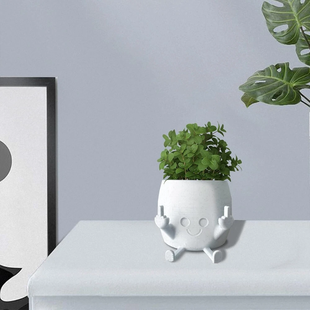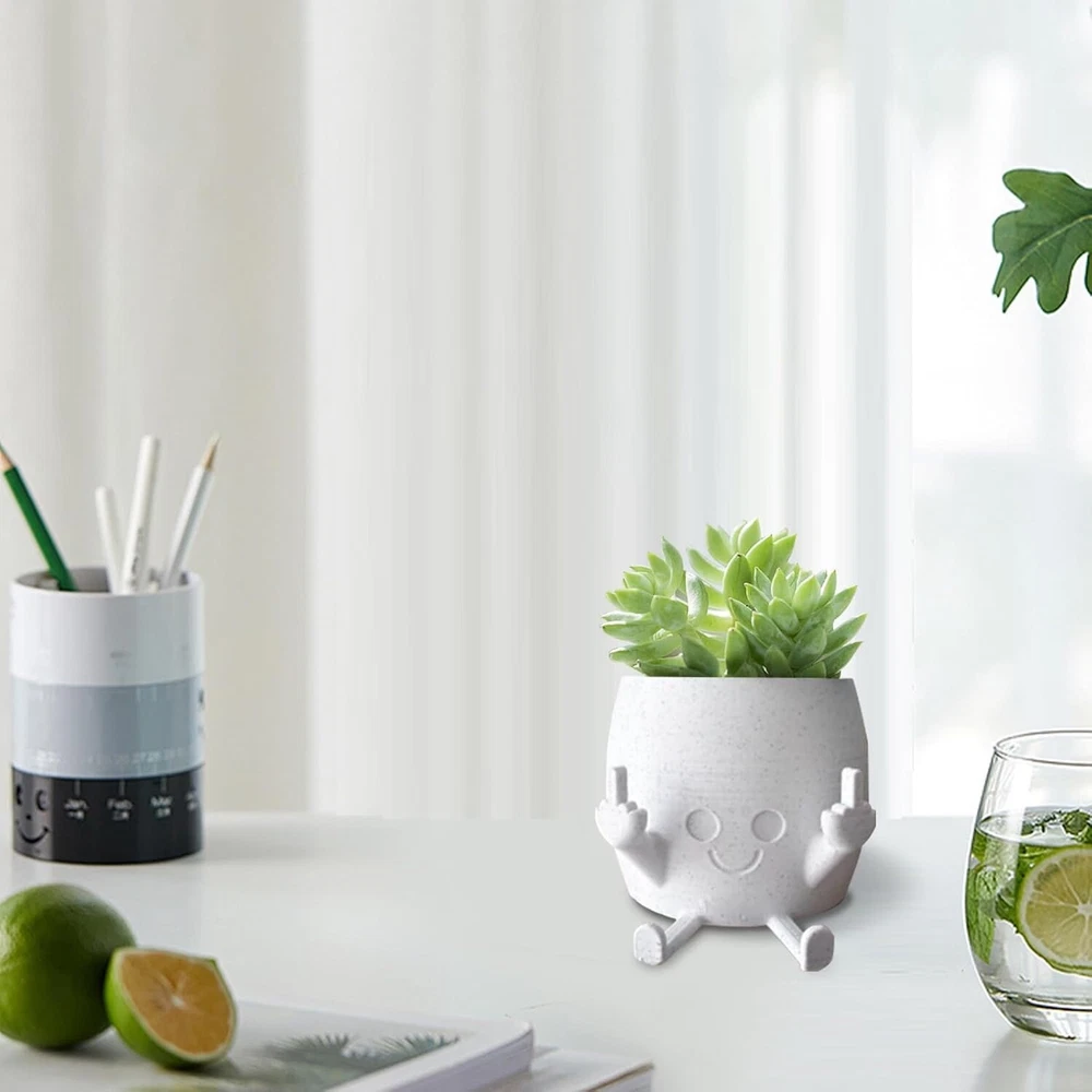 Add a touch of personality to your indoor or outdoor garden with the SXIDPDA Smiling Plant Pot. This unique, small-sized ceramic flower pot features a charming round shape and a playful middle fingers up design that's sure to brighten any plant display. It's ideal for showcasing your favorite succulents or other small compatible plant types, bringing a fun twist to your greenery.Crafted to balance both style and function, the pot measures 4 inches in height and 5 inches in width, providing a comfortable home for your plants with ample space for growth. The gray hue complements a variety of decors, making it a versatile addition to any space. Whether for personal use or as a thoughtful gift, this flower pot is a delightful choice for plant enthusiasts.