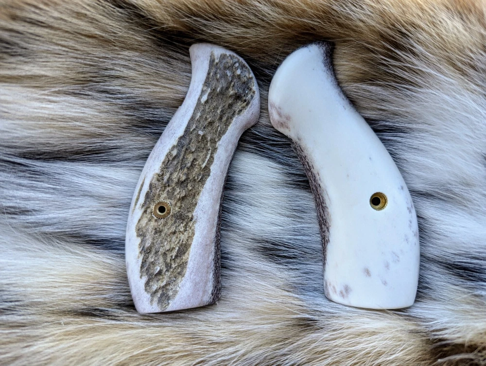Smith and Wesson K/L Frame Round Butt Elk Antler Grips Superior Custom Build and Quality Handmade in USA Upgrade your Smith and Wesson revolver with our beautifully crafted elk antler grips, designed to fit K and L frame round butt models. Each pair showcases the unique character of naturally shed elk antlers, providing both aesthetic appeal and a comfortable grip for enhanced shooting performance. Compatibility and Model Information: While K and L frames are similar in size and fit, the N frame is built sturdier for magnum calibers. The easiest way to distinguish between K and N frames is through the model numbers: K Frame Model Numbers: 10, 11, 12, 13, 14, 15, 16, 17, 18, 19, 547, 586, 581, 617, 686, 696, 986, 55, 64, 67, 48 N Frame Model Numbers: 23, 25, 27, 28, 29, 625, 629, 627, 327, 325, 329, M&P R8, 57, 59, 624, 625, 626, 627, 629, Magna Classic Note: K, L, and X frames share the same grip specifications. Included with Purchase: Grip screw provided for easy installation. Historical Notes: The Smith and Wesson K-frame family represents iconic American double-action revolvers. The first K-frame was introduced in 1899, available in both round and square butt configurations. These revolvers served notably in both World Wars, with over 568,000 produced for the British armed forces during WWII. While the design and mechanisms have evolved, Smith and Wesson has maintained frame consistency and grip interchangeability, with most contemporary K-frames being round butts. Shipping & Guarantee: Fast 1 Business Day Turnaround: We know you're eager to enhance your pistol, so we ship all orders within 1 business day. Free Domestic Shipping: Shipping within the U.S. is on us, at no additional cost to you. Expedited Shipping Options: Need your grips faster? Choose an expedited shipping option at checkout. 30-Day Money-Back or Replacement Guarantee: All domestic orders include a 30-day money-back or replacement guarantee, with free return shipping covered by us. Lifetime Warranty: We stand by the quality and craftsmanship of our products, which is why we offer a Lifetime Warranty on all items. If your product experiences any defects in materials or workmanship at any point, we will repair or replace it free of charge. This warranty ensures you can purchase with confidence, knowing your item is built to last. For warranty claims, simply contact us, and we'll be happy to assist you. If you have any questions or special requests, please don't hesitate to reach out. We're happy to assist!