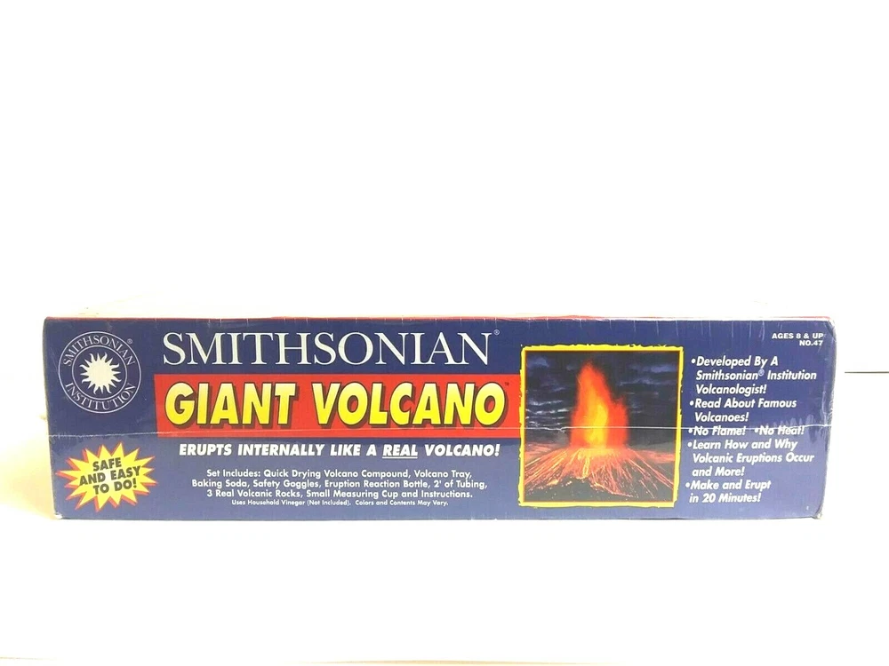 Smithsonian Giant Volcano - NEW IN SEALED BOX - SAFE and EASY AGES 8 AND UP. Safe and Easy To Make Your Own Volcano Using Household Products. Everything Including Real Volcanic Rocks Included With Kit. Vinegar Required (not included). Give Your Kids Something To Do With Their Hands and Learn at the Same Time. Thank You For Looking. We Take Great Pride In our Items and Strive To Bring You Quality Merchindise. Smoke & Pet Odor Free Shipped With UPS Ground To Lower 48 States Only.