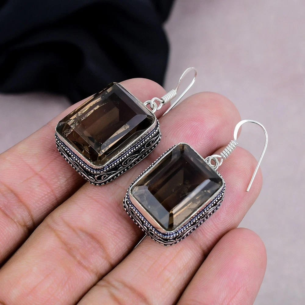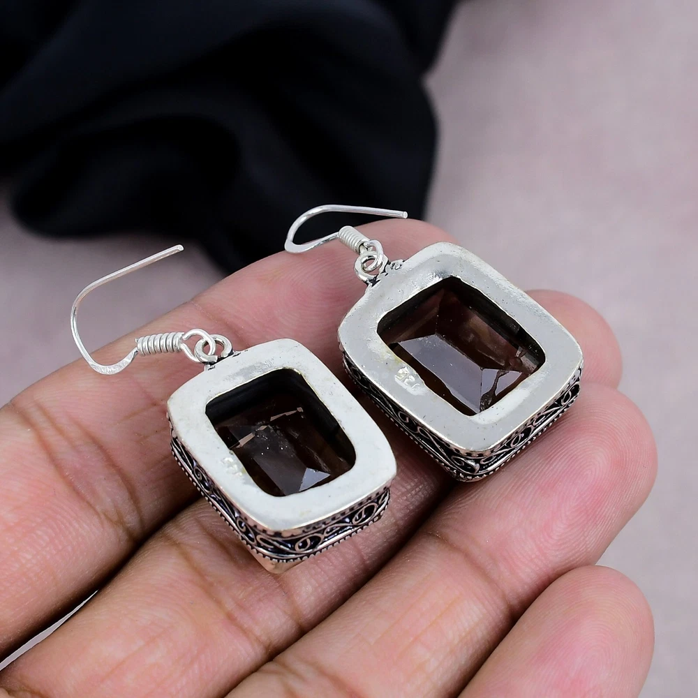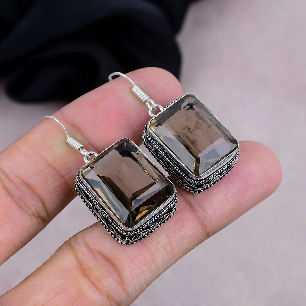 Smokey Quartz Gemstone Earring 925 Sterling Silver Earring Handmade Jewelry Gift