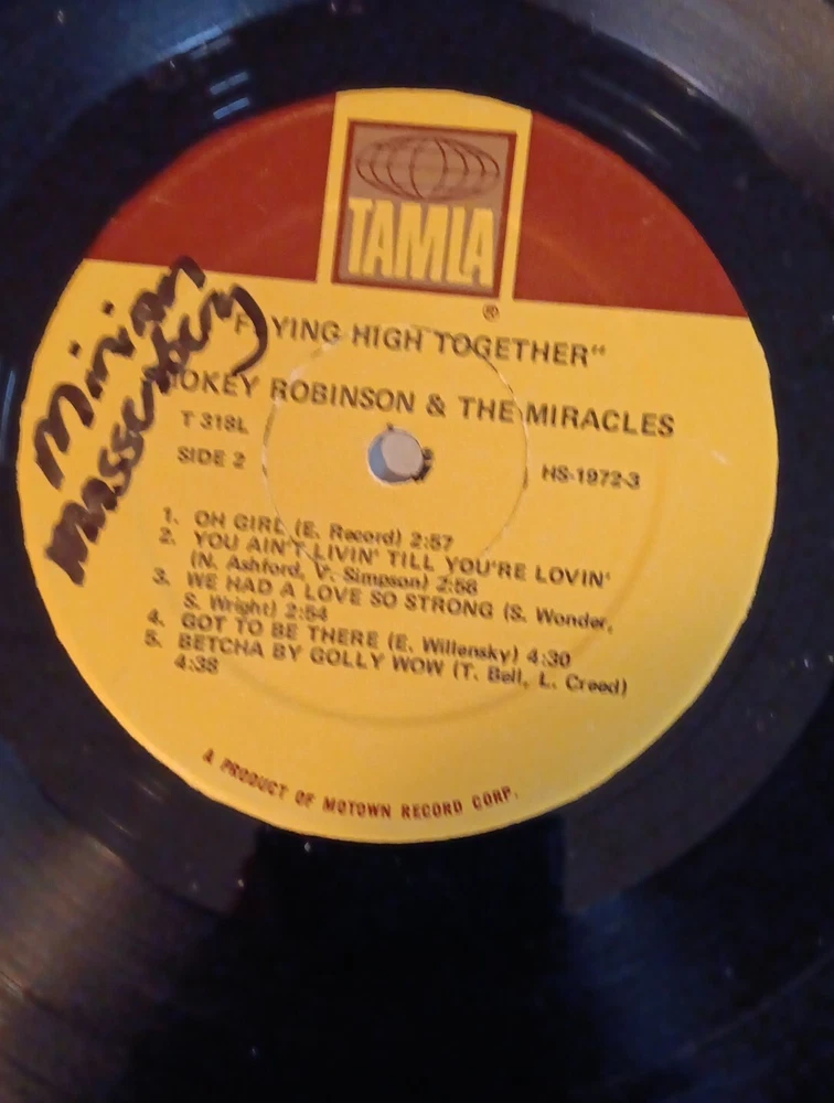 Record plays very well. It has a few scratches and there is writing on the label. The cardboard cover is intact but it has writing on the bac of cover and has some peeling around the edges.
