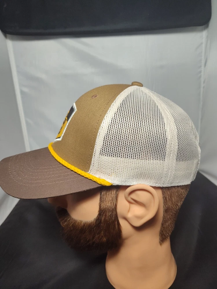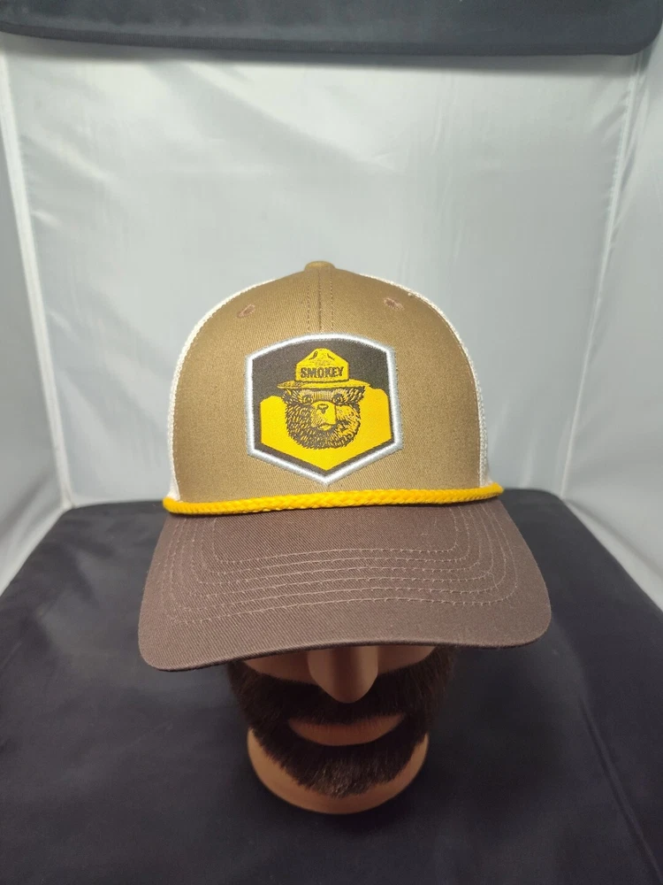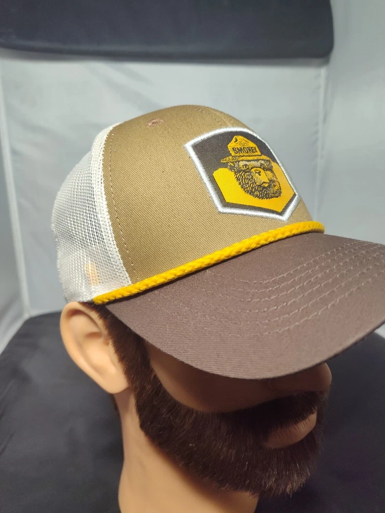 Get ready to hit the road in style with this Smokey The Bear Trucker Hat. The hat features a solid pattern with a logo and a 6-panel design for a structured fit. The mesh back provides breathability and moisture-wicking technology to keep you cool and dry during hot summer days. The adjustable snapback ensures a comfortable fit for all head sizes. This unisex hat is perfect for any casual occasion and is made from a cotton blend material with a canvas fabric type. The hat is lightweight and quick-drying, making it perfect for outdoor activities. The retro style and American theme make it a great addition to any wardrobe. Don't miss out on this classic piece!