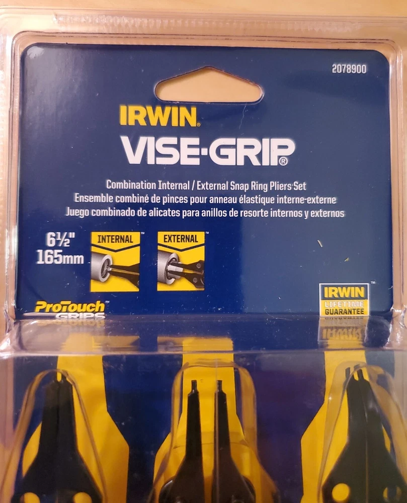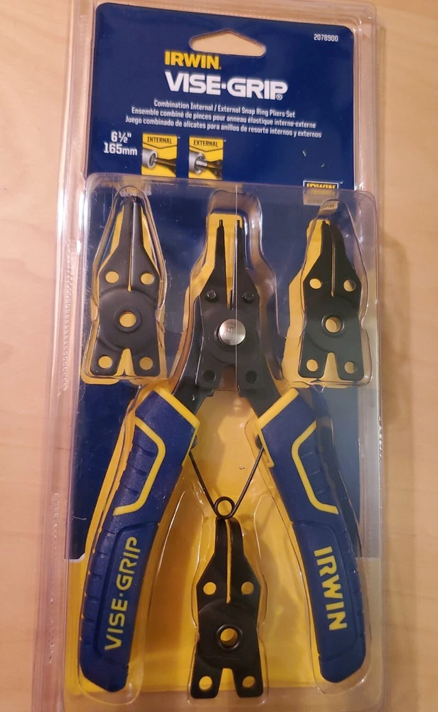 Irwin Vise-Grip, 4 Piece, Convertible Snap Ring Pliers. 6.5 inches long, comfortable rubber pro touch grips, reversible for internal or external snap ring service. comes with small and medium size straight tips, 90° tips (med) and 45° tips (med) size.. LIFETIME WARRANTY through irwin!! Ships out to you Fast and Free via USPS First class mail !! message me with any questions, thanks for looking CDM