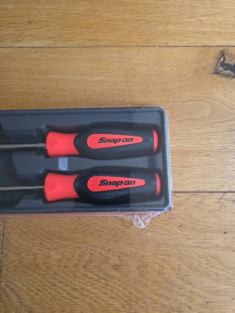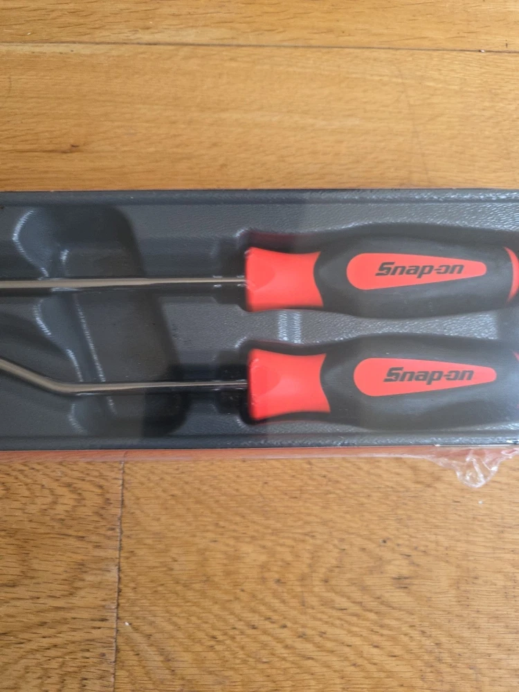 The Snap-on SGRHT2BO Soft Grip Radiator Hose Pick Set consists of 2 pieces in an eye-catching orange color. This durable set is manufactured in the United States and features a soft grip handle for comfortable use. The tools are designed for efficiently removing and installing radiator hoses in vehicles, making them a valuable addition to any mechanic's toolbox.