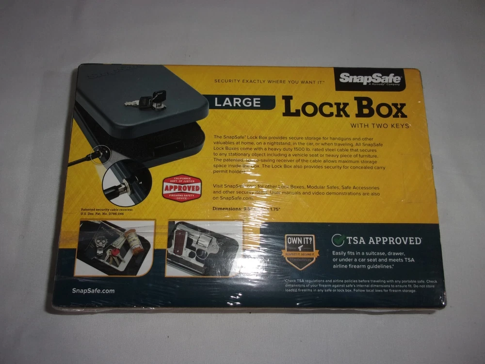 SnapSafe, Large Lock Box, NEW, Model: 75205, TSA Safe Firearm Storage New Sealed