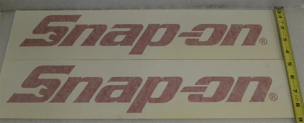 This is a New Old Stock Snap-on® Tools 1990's RED Old Die Cut Logo Truck or Tool Box Decals Set of 6 in 3 different sizes (2) 18" x 3 1/2", (2) 22" x 4 1/4" & (2) 31" x 6". These were designed to be applied to the outside of the dealers truck, on a tool box or Race Cars. The last picture shows one installed on my overhead locker above my tool box. It will be rolled and mailed in a strong cardboard tube. Decals come in 1 piece: 1. Top layer is a transparent transfer tape. (Holds your decal or sticker together until it is applied) 2. Middle layer is your actual decal or sticker (It is sandwiched between the Application Tape and the Wax Backing) 3. Bottom layer is the paper backing. (protects the adhesive until the decal is ready to be applied) Application Tips: 1. Do not apply on extreme cold or hot Surfaces. Ideal temperature must be between 60°F & 90°F (room temperature). 2. Do not touch the adhesive backing, oils from your skin will prevent sticking. 3. Before applying decal make sure there is no wax, oily products or dust on the surface of vehicle. Application Instructions: 1. Rub the sticker to be sure the transfer tape is properly adhered to the sticker. 2. Clean and dry the desired area. 3. Remove the paper backing slowly making sure the sticker stays adhered to the transparent transfer tape. 4. Spray the area with 2% soap and 98% water. 5. Carefully position the sticker to the desired area. The water will allow the vinyl to be re-positioned. 6. Use a squeegee/credit card and rub the sticker from one side to the other, eliminating any air bubbles and water that is trapped underneath. Continue until the adhesive adheres to the vehicles surface. 7. Slowly remove the transfer tape, making sure no part of the sticker remains on the transfer tape. 8. You may use blow dryer to soften the adhesive some more and rub the sticker so it will adhere better. 9. Check for air bubbles. In most cases air bubbles can be worked to the edge of the sticker, but if not, a pin hole will allow the air out and become virtually invisible. 10. Wrap the vinyl around the edges and use a blow dryer to dry off the remaining excess water. Yes I will combine shipping on multiple purchases whenever it is possible check out my other items ! Be sure to add me to your favorites list ! Thanks for Looking and Good Luck Bidding Powered by SixBit's eCommerce Solution