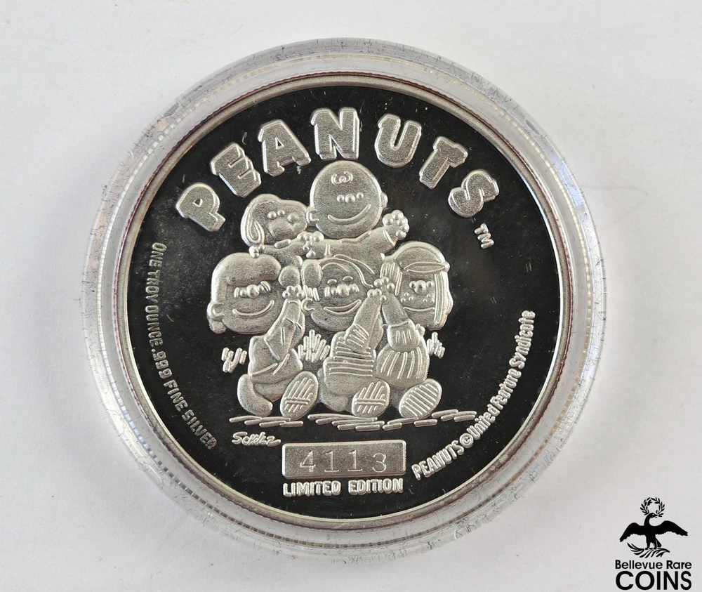 Snoopy & Charlie Brown Peanuts 50th Celebration .999 Fine Silver 1oz Round w/Box Snoopy & Charlie Brown Peanuts 50th Celebration .999 Fine Silver 1oz Round w/Box *Please SEE PHOTOS for condition. If you should have any questions or concerns, please feel free to message us Monday - Friday 9:00am - 5:00pm via eBay’s “Ask question” button below. We add hundreds of new coin and bullion listings weekly. We encourage you to check out our other listings and our eBay auctions! Click Here To See All Bellevue Rare Coins Gold Bullion L istings Shipping & Returns: $4.00 USPS Ground Advantage shipping within the United States, unless otherwise noted in listing. Shipping and Handling: Domestic Shipments - Bellevue Rare Coins provides $4.00 United States Postal Service (USPS) Ground Advantage shipping with tracking for all shipments within the United States, unless otherwise specified. International Shipments - All International orders are shipped via eBay's International shipping program. International Shipping and handling fees will be determined at check out. Please contact us for shipment fee estimates. Combined Shipping - Bellevue Rare Coins offers combined shipping for domestic buyers who have won multiple auctions. We will send out updated invoices with discounted shipping costs on Monday mornings. Please wait until you receive the updated invoice from us to make your payment. We do not offer combined shipping for International Buyers. Return Policy - Bellevue Rare Coins has a 30-calendar day return policy. All returns must be shipped within 30 calendar days of receiving the product. All returned items must be in their original packaging. All return requests must be made within 30 calendar days of customer receiving the merchandise. When returning merchandise, please include the item number, as this will expedite the refund process. Bullion Returns - Customer may (at Bellevue Rare Coins' discretion) be required to pay for any market loss on their returns. Any market gain on refunds shall remain the property of Bellevue Rare Coins. Listing Information: Product Photography - Bellevue Rare Coins does not use stock photos. Items in our listings have been photographed by our team in-house, so you can trust that you're making an informed purchase, ensuring transparency and authenticity. Messages - We greatly value your messages and are committed to responding to your questions and inquiries as promptly as we can. Nevertheless, please understand that immediate responses may not always be possible. Kindly note that we are unable to respond to messages on weekends, but we assure you that your inquiries are important to us, and we will get back to you during our working hours as soon as possible. About Bellevue Rare Coins Bellevue Rare Coins is a family-owned and operated business who have been proudly offering their services since 1979. We are the leading rare coin and currency dealer in the Greater Seattle Area who also specialize in jewelry and estate items. We are focused on delivering a simpler experience to our customers. Providing a reputation that dramatically affects our consumers in a positive way. We ensure that our clients always feel welcome and valued.