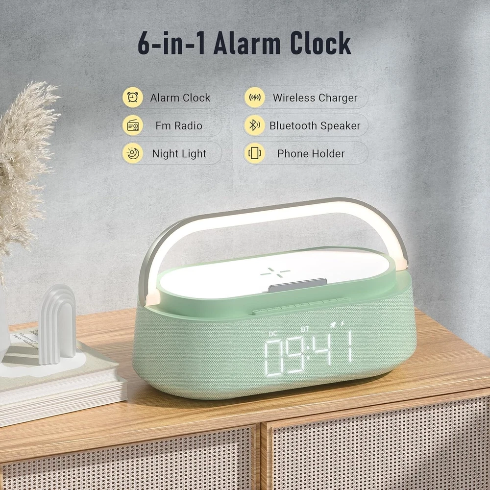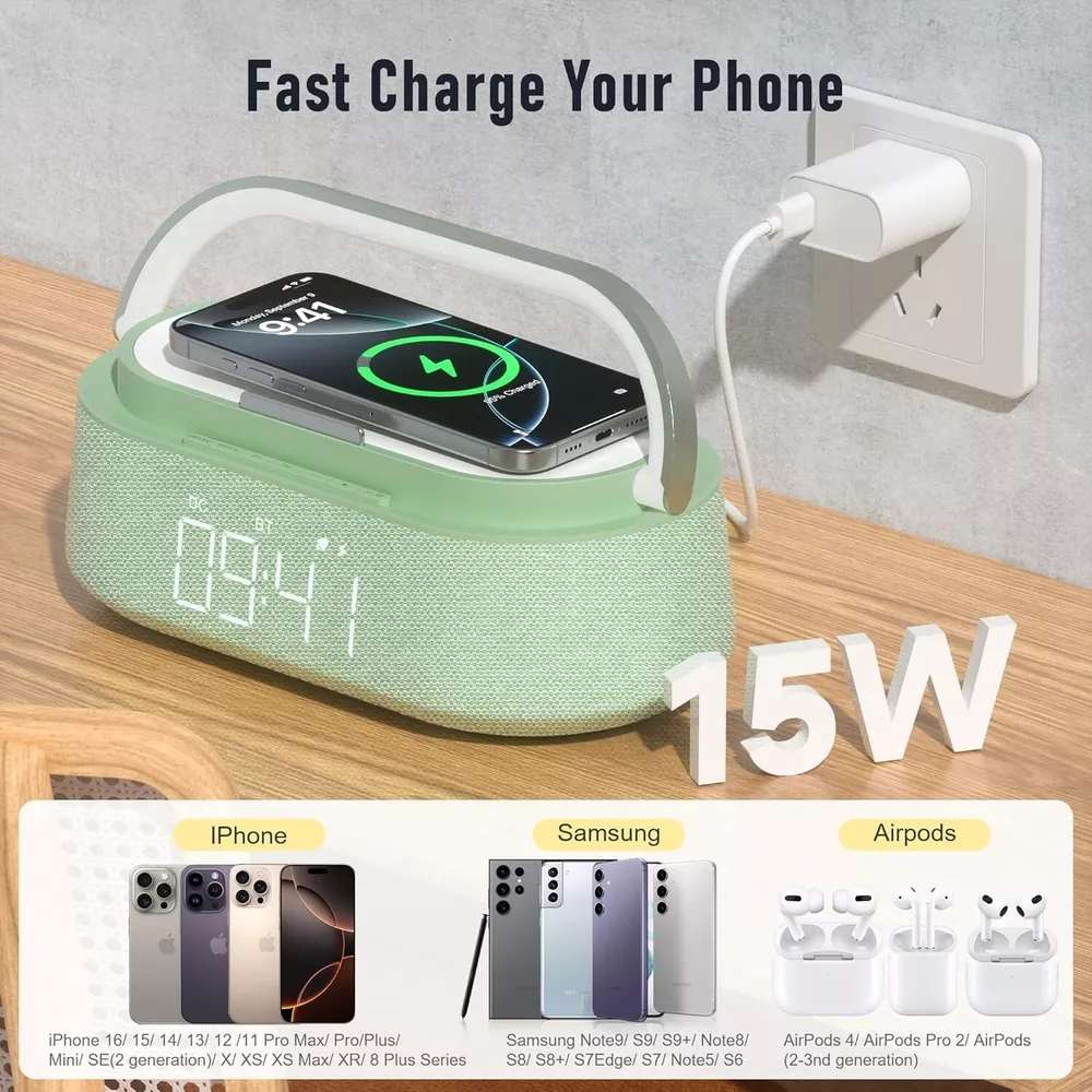 Snooze Alarm Clock with Bluetooth Speaker, Wireless Charger & Touch Night Light ‹ › ‹ › ‹ › ‹ › ‹ › ‹ › ‹ › ‹ › ‹ › ‹ › Snooze Alarm Clock with Bluetooth Speaker Wireless Charger & Touch Night Light 6-in-1 Multifunctional Design Smart Alarm Clock: Blends a Bluetooth speaker, wireless charger, FM radio, digital alarm clock, adjustable night light, and phone stand into one sleek device. Fast & Safe Wireless Charging 15W Fast Charging: Equipped with intelligent charging protocol to provide quick and safe wireless charging for compatible devices. Supports iPhone models including 16/15/14/13/12/11/X/8 and AirPods. Compatible with Samsung Galaxy S21/S22/S23 series with 10W charging capability. Efficient Wake-Up Features Smart Alarm: Reliable alarm functionality with a 5-minute snooze mode that can be activated up to four times. Designed to ensure you wake up refreshed and on time. Exceptional Bluetooth Sound Quality Advanced Audio: Features Bluetooth 5.0 technology for stable connections up to 33 feet. Dual speaker design delivers clear sound quality and rich bass for a seamless music experience. Warm Night Light Function Adjustable Brightness: Touch-sensitive night light with three brightness levels (30%/70%/100%). Creates a soothing atmosphere perfect for reading, relaxation, or coaxing children to sleep. Perfect Gift & Home Decor Exquisite Design: Crafted from high-quality materials, this multifunctional clock is a stylish addition to any room. An ideal gift for special occasions: Christmas, Valentine's Day, Mother's Day, Father's Day, or birthdays. Why Choose Our Snooze Alarm Clock? Elevate your mornings with the perfect blend of practicality and elegance. This multifunctional alarm clock not only awakens you gently but also enriches your day with exceptional sound quality and the convenience of a fast charger. Its soft night light and exquisite design make it more than just a clock; it's a beautiful centerpiece for your home. Treat yourself or a loved one to this perfect blend of style and functionality—transform your waking experience today! Shipping Free & Fast Shipping - We offer free shipping to most of the USA with a normal delivery time of 3-7 days. However, due to the current situation, additional delivery time (up to 3 weeks) may be required for some items. Alternative Carriers - We may use alternative carriers (e.g. USPS, FedEx, UPS, etc.) to ensure your package arrives safely and on time. Due to the use of multiple carriers, we are unable to provide a tracking number automatically. Handling Time - Orders are processed and shipped within 1-2 business days of receiving cleared payment. Shipping Restrictions - Shipping to Alaska, Hawaii, Puerto Rico, Guam, and other US territories may incur shipping charges or delivery restrictions. Please contact us before ordering, or your order can be refunded/cancelled. State Restrictions - There may be restrictions based on your state of purchase. For example, certain items may not be shipped to California due to state regulations. Contact for Tracking Updates - If you require tracking updates or have any concerns about the delivery of your order, please feel free to contact us, and we will be happy to assist you. Return Please see our eBay Return Policy. Thank you. Payment We accept all major credit cards, PayPal, and Apple Pay for your convenience. Your payment information is secure and encrypted to ensure a safe and seamless transaction. Please complete your payment within 3 days of purchase to avoid any delays in shipping. Feedback Your feedback is extremely important to us. We strive to provide the best products and customer service possible. If you are satisfied with your purchase, please take a moment to leave us a positive review. If you have any concerns or issues with your order, please contact us before leaving negative feedback. We are committed to resolving any problems and ensuring your satisfaction. Contact Us If you have any questions or concerns, please feel free to reach out to our customer support team. You can contact us through the eBay messaging system. We are available Monday to Friday, 9:00 am to 5:00 pm EST, and we will do our best to respond to your inquiry within 24 hours. Thank you for supporting our small family business! UPC: Not Set Unit Quantity: 2.31 pounds Charging Power Range: 15W Item Height: Bluetooth Speaker with Charger Item Length: Bluetooth Speaker with Charger Item Width: Not Set Connectivity: Bluetooth Features: Bluetooth,Charger Included,Touch Control,Snooze,FM Radio,Temperature Control,Fast Wireless Charging,Touch LED Night Light,Alarm Clock with Snooze,Portable Wireless Speaker Color: Green Audio Inputs: None Compatible Brand: Not Set Compatible Model: Universal Smart Home Compatibility: None Surround Sound Formats: None Brand: Unbranded Model: Bluetooth Speaker with Charger Type: Bluetooth Speaker RMS Power: 15 W System Configuration: Mono MPN: Not Set Unit Type: lb Year Manufactured: Not Set Shape: Rectangular Material: Abs Country/Region of Manufacture: Not Set Plug Regional Fitment: Not Set Battery Capacity: None Manufacturer Warranty: Not Set Item Weight: 2.31 pounds