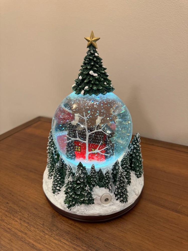 Experience the enchanting charm of this battery-operated snow globe Christmas decor. Please turn it on & watch the MAGIC of this stunning design, perfect for adding a festive touch to your holiday celebrations! Experience the magic of the holidays with this enchanting music box, showcasing Santa joyfully delivering gifts to a whimsical red cabin. Tune: Deck The Halls CONDITION: Pre-owned but in good condition. See attached photos Color: Multicolor Style: Vintage-looking Materials: Glass, resin, and others, such as the liquid filler and electronic components (battery operated) Measurements: 9.5 in H x 6.3 in W x 6.3 in D, approximately "All our items are sold as is." We are committed to ensuring you the best customer experience and affordable prices. Thank you for supporting our small business and contributing to a better and cleaner world.