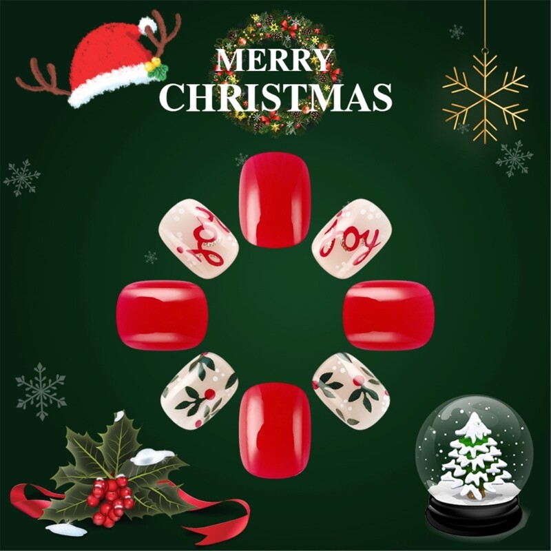 $ 1.2624Pcs Short Almond Christmas False Nails with Gloves Winter Holiday Design