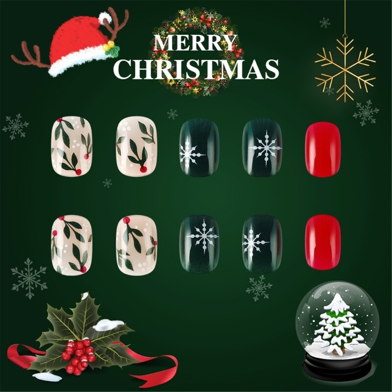 $ 1.2124pcs Christmas Press On Nails with Snowflake Designs for Women