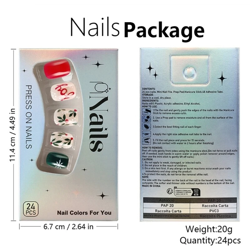 Features: Short square false nails is beautiful, which will add elegant feeling to your Christmas press on nails are suitable for enthusiasts, beauty salons, and anyone who loves to experiment with their look. All-matching full cover on nails is suitable for enthusiasts who want professional results. These false nails are suitable for everyday wear. Funny to decorate nails with your family and friend when family gathering and party, enjoy your special look and the good for time. Snowflake false nails is suitable for various occasions like parties, weddings, and daily life, these christmas false nails will add a touch of confidence and charm to your overall look. Specifications: Component: ABS Package Includes: 1 Set False Nails note: Please allow 1-3cm errors due to manual measurement. Due to the difference betweeen different monitors,the picture may not reflect the actual color of the item.