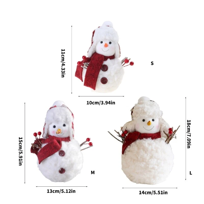 Features: Bring home the holiday cheering with Snowman Plush Figure Dolls, a lovely addition to your festival decorations. from high soft plush, this snowman features eyecatching detail, completing with a scarf and plush hat for that winter look. Great for collectors and enthusiasts of all ages, this snowman plush figurine is a great present for anyone who cherishes holiday decors. Great for sprucing up any space, place this cartoon snowman in your living room, bedroom, or office to infusing a touch of winter charm into your Each Snowman Figurine Dolls is not only lovely but also to last, become a great ornament for years to come. Specifications: Component: Foams, Cloth Color: As pictures shown. Optional Size: S 10x11cm/3.94x4.33in; M 13x15cm/5.12x5.91in; L 14x18cm/5.51x7.09in Quantity: 1Pc Package Includes: 1pc Snowman Figurine Ornament note: Please allow 0-1cm error due to manual measurement. please make sure you not mind before you bid. Due to the differences between different monitors, the picture may not reflect the actual color the item.
