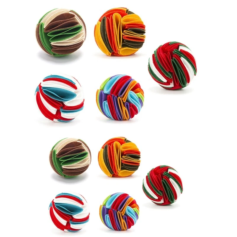 Features: and high The main fabric of the olfactory bulb is environmentally friendly felt cloth, which is soft and skin-friendly, environmentally friendly, and supports machine washing. The olfactory bulb is upgraded version of the traditional olfactory pad. It is more difficult for dogs to get Therefore, the dog gets used to smelling the for the first for time and puts on the It's easy to find easy place for dogs. It has been in the and can be put into the which moderately increases the difficulty of dog Sniff the balls from many folded circles, there are many deep collections, and the owner can hide between the fabrics to encourage your pet to smell them. The difficulty of foraging, the dog is looking for roots according to the smell, while eating the Easy to store, small in size, the smaller the the more concealed, the harder it is. It is excellent concentrated toy. Specifications: Felt Cloth Color:White Red Blue, White Red Green, Yellow Red Brown, Rainbow Color, Brown Green Size: Approx. 15 for cm/5.91 inches Size: Approx. 20 for cm/7.87 inches Package Includes: 1 x Dog Snuffle note: 1.Please allow 0-2cm errors due to manual measurement, make sure that you do not mind before you order. 2.Due to the difference between different monitors, the picture may not reflect the actual color of the item. 3.Other parts are not included. Thanks for your understanding.