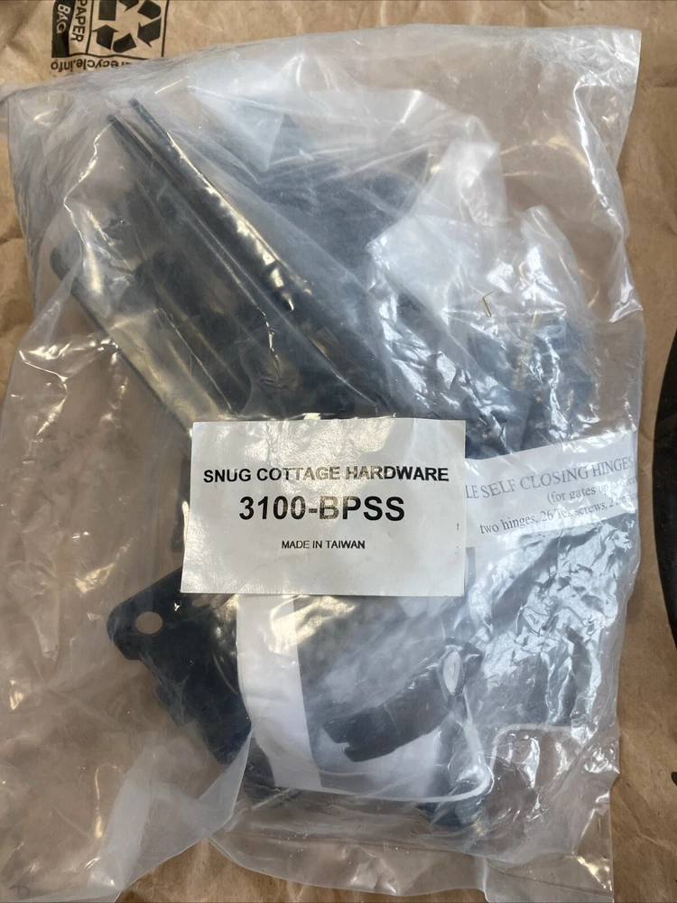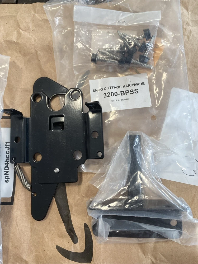Snug Cottage Hardware Gate Latch and Hinges Snug Cottage # 3100-BPSS & 3200-BPSS Never used, one package was opened, appears complete. Finish: Black