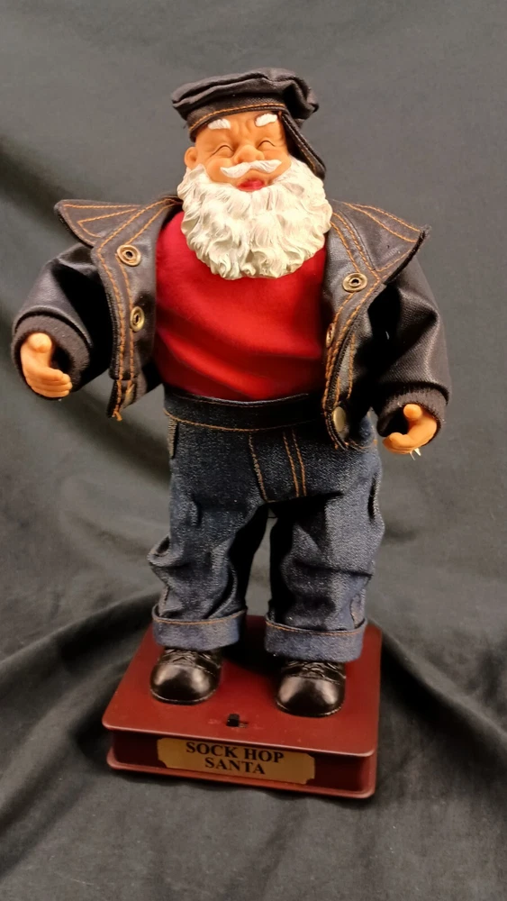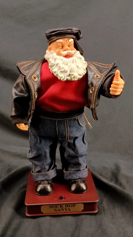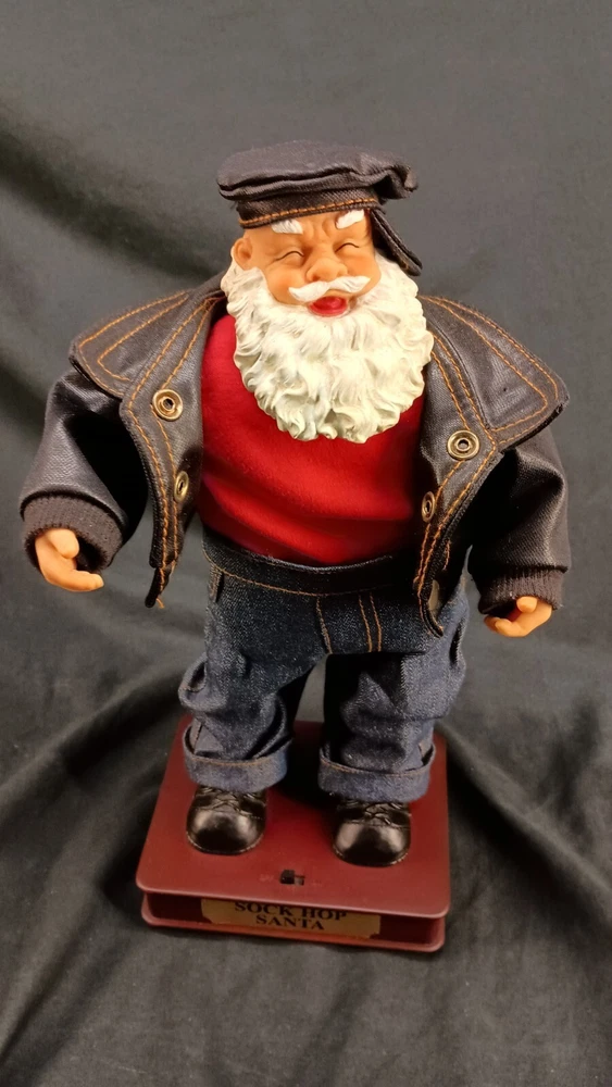 The "Sock Hop Santa Animated Dancing T.L. Toys HK LTD Christmas Biker" is a festive and entertaining figurine featuring an animated Santa character in a hip hop style, manufactured by TL Toys in 1991. Standing at 13 inches tall, the colorful Santa is designed to dance and play music, making it a fun and unique decoration for Christmas celebrations. This item does not require any additional parts and is in good working condition, adding to its appeal for collectors and fans of animated holiday decor. Thank you for visiting my listing today and thank you for your interest in this item! My goal is to have a pleasant transaction resulting in a satisfied customer. I hope any transaction between us leaves you with a feeling of confidence knowing you can trust me and the items I offer here. *Most if not all my listings are set to accept offers. Feel free to send an offer and I will be happy to consider it!! *Please contact me with any questions or concerns and I will be happy to help. *Always examine the photos carefully, and if in doubt, email me with any questions you may have. *Please note that condition statements are offered as a guide only. They will always be somewhat subjective and reflect our opinion, which may not necessarily agree with someone else's opinion. PLEASE READ: I aim to please and I want my buyers to have a positive transaction with me. If you have questions, concerns, or special requests related to any of my items I hope you will contact me so we can work them out to your satisfaction. I sell my items to give you a great item at a decent price while making a little profit at the same time. If you feel the item you are interested in is too pricey do not hesitate to send me a fair offer and I will consider it. My goal is to satisfy your needs and mine so both parties can benefit. SHIPPING: If you prefer a different shipping method or company please contact me and I will do all I can to make that happen. If you have concerns or requests about the packaging of your item contact me and I will do all I can to accommodate them. Shipping costs are based on location in each state or country, the costs always differ. After I have received your payment I will ship your item out within 3 business days or less excluding weekends and holidays. BEFORE PURCHASING & BIDDING: **Please see all the pictures. I do not have great photography skills but I try to get the most accurate photos I can. If you are unsure about something you see in a photo contact me so I can do what I am able to answer your concern about the item. **I cannot stress enough that if you have any questions or concerns please contact me before purchasing and bidding. Communication can solve so much. **As a customer myself, I understand the meaning of customer satisfaction and my goal is to have nothing but satisfied customers. If you are not unsatisfied with your purchase I ask that you please contact me so I can take care of your issue. My goal is for you to be 100% satisfied. INTERNATIONAL BUYERS WELCOMED - PLEASE NOTE: I welcome International buyers! Please be aware that any custom/duties/taxes that the parcel might incur once it is out of the USA are the responsibility of the buyer. Please check with your country's customs office to determine what these additional costs will be prior to bidding or buying. Please refer to the eBay Site Map for more information if needed.