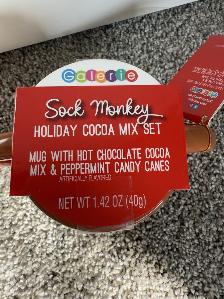 This Sock Monkey Mug & Cocoa Mix Set by Galerie is a fun and festive gift for Christmas. The medium-sized brown mug features a funny animal design in a pop art style, making it a novelty addition to your kitchen. The set includes a mixed set of cocoa mix, perfect for enjoying a hot beverage during the holiday season. Both the mug and cocoa mix are microwave and dishwasher safe, adding convenience to this charming seasonal item.