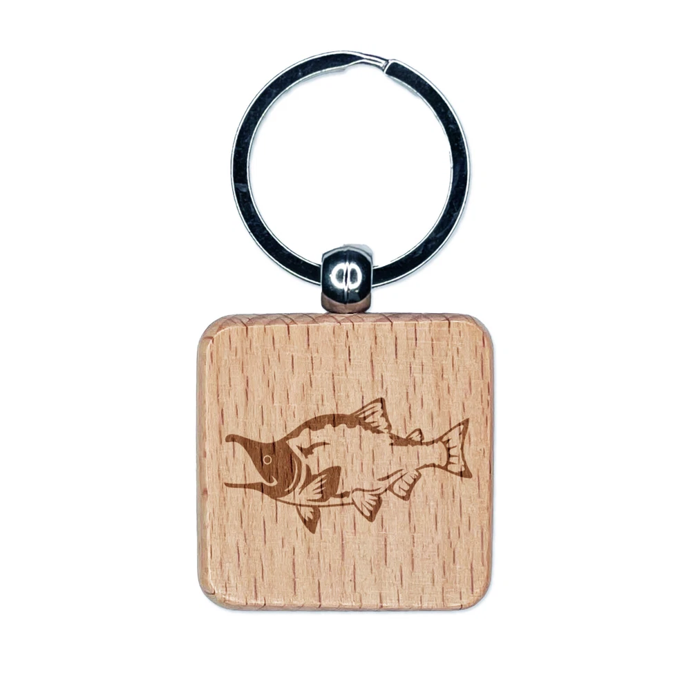 Sockeye Salmon Fish Engraved Wood Square Keychain Tag Charm