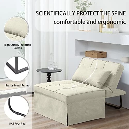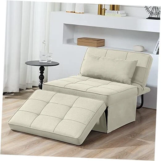 Return Policy Fast Delivery Trusted seller Sofa Bed, 4 in 1 Multi-Function Folding Ottoman Breathable Linen Couch Bed with Adjustable Backrest Modern Convertible Chair for Living Room Apartment Office, White Product Description MULTIFUNCTIONAL SOFA BED: The convertible sofa bed can be used as a ottoman in normal. It can be easily and quickly converted into a sofa, lounger or a bed to meet your various and versatile needs WIDELY USE FOR ANY SCENE: With modern design and simple look, our folding ottoman sleeper bed fits to various decorative styles that is ideal for diverse life scenes like living room, office room, balcony, bedroom, dorms, studios and especially great as an extra bed for guests. small apartment MATERIAL: This 4 IN 1 Folding Sofa Bed is wrapped in premium linen fabric for beauty and comfort. High-density sponge makes the sofa very elastic, suitable for rest and sleep. The adjustable sofa back is stable and durable, allowing you to relax at every angle STURDY WITHOUT ASSEMBLY: The Folding Ottoman is made of high-quality materials and metals.Not only does it durable, but it can easily withstand 550lbs,avoiding all risk of injury. Also It can be used directly after received, No Assembly any more MODERN STYLE: Understated modern design makes the Folding Ottoman sofa bed more simple and generous. The classic gray is suitable for all styles Shipping Returns Payment Shipping Shipping is FREE to all addresses other than APO/PO boxes in the lower 48 states. All our stock ships from US-based warehouses. Shipped via USPS or UPS (depending on location and package weight) Unless stated otherwise, all orders will ship within 24-72 hours of your payment being processed. Check our feedback to see the great reviews of FAST shipping we offer. Returns Seller does not accept returns Payment We currently accept payment via eBay managed payments only. Once payment is cleared, we will dispatch your shipment within 1-3 business days. Please refer to the "Shipping" tab for more information regarding shipping speed to your destination.
